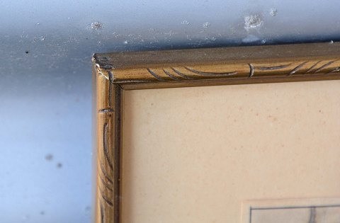 Delvist farvelagt tegning med motiv af mennesker i bylivet af Rasmus Christiansen (1863 – 1940). Signeret "RxChr". Intakt med brugsspor på rammen.