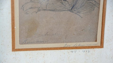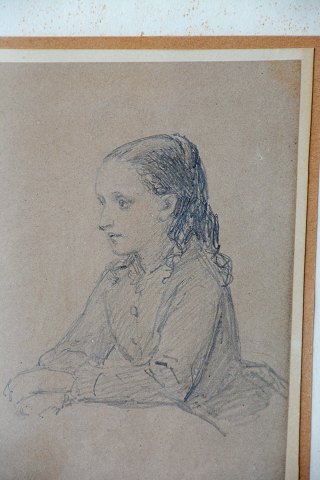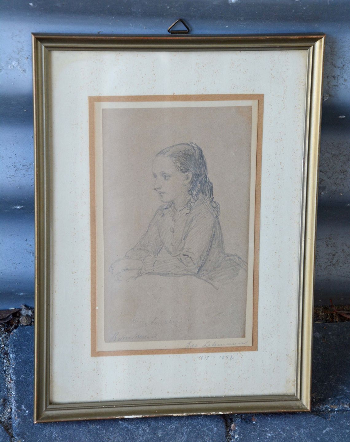 Portræt tegning af Amalia. Tegnet af Edv. Lehmann (1815-1892). Intakt med brugsspor på rammen.