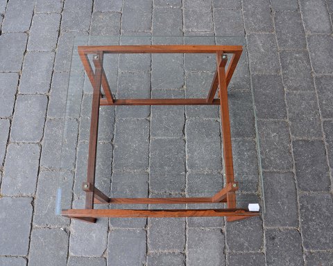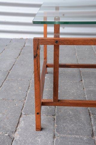 Sidebord eller lille sofabord med stel i palisander og topplade i glas. Intakt med få brugsspor - enkelte ridser i glaspladen.