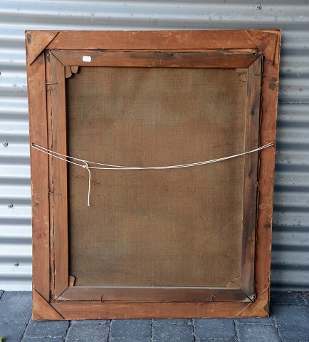 Maleri på lærred med motiv af arbejdende kvinder. Maleriet fremstår usigneret med brugsspor på rammen og maleriet.