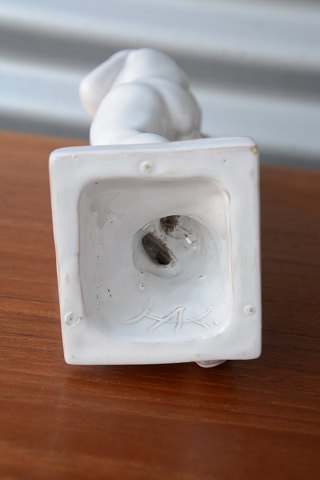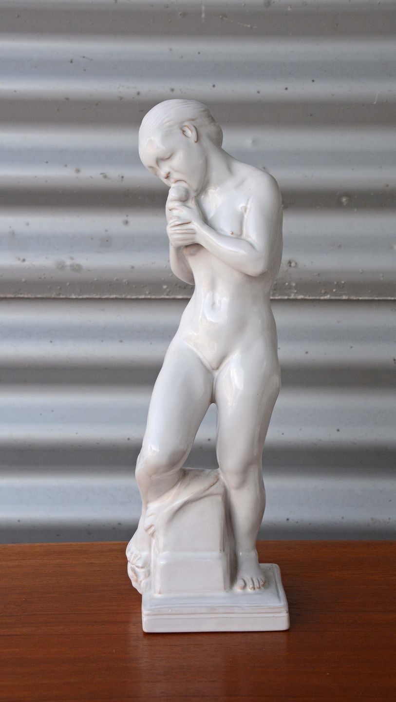 Hvidglaseret keramik figur af Eva med Æblet fra Kähler. Signeret HAK. Danmark. Nr. 9. - Minimalt afslag i glasuren ved figurens fod ellers er den intakt. Designet af Kai Nielsen