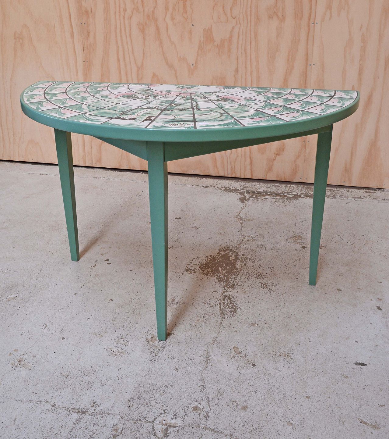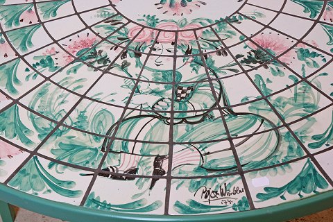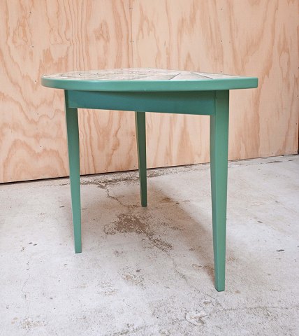 Grønmalet bord med malede kakler med kvindemotiv af Bjørn Wiinblad. Signeret "Bjørn Wiinblad ´74". Fremstår med minimale brugsspor.