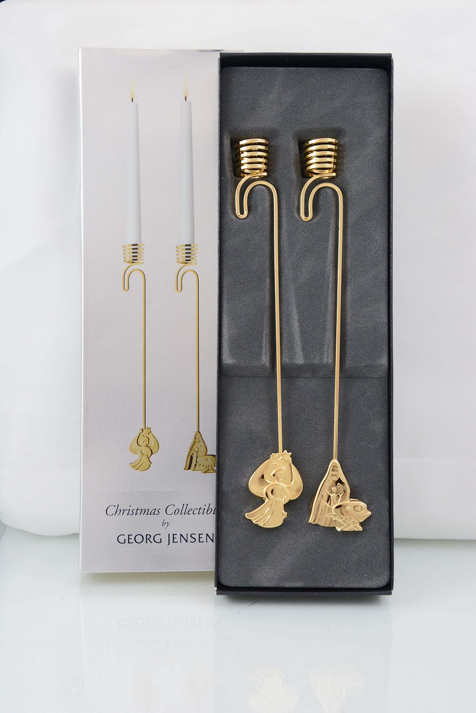 Georg Jensen lyseholdere. Udført i messing forgyldt med 24 karats guld. Christmas Collectibles designet af Rebecca Uth 2012