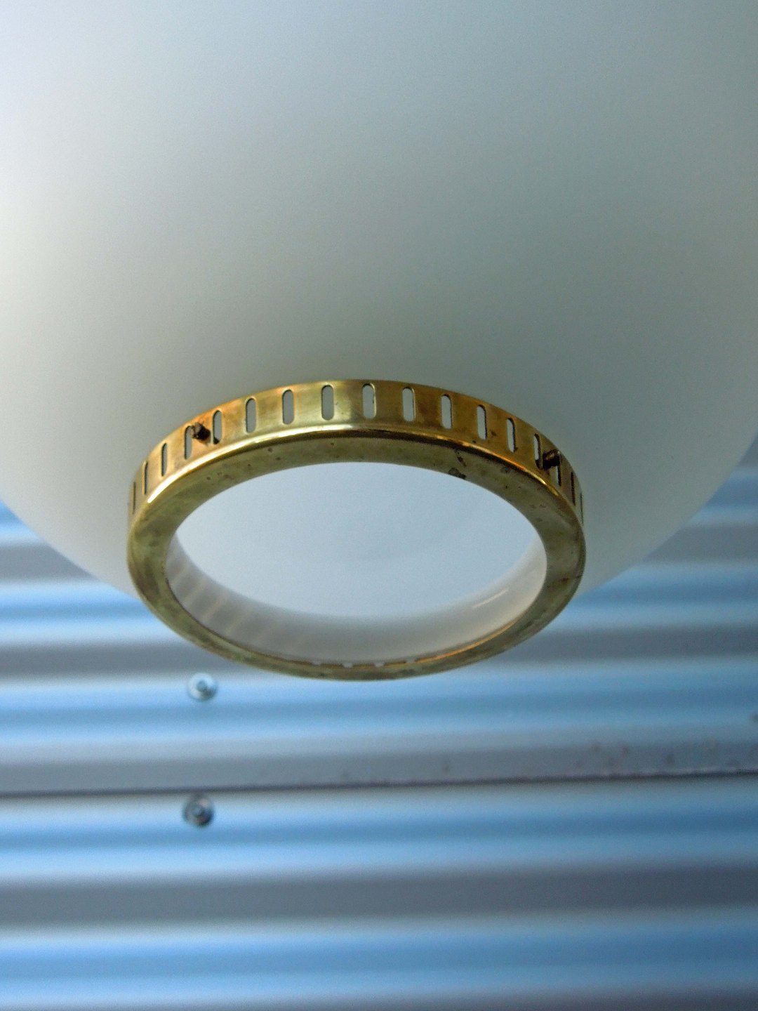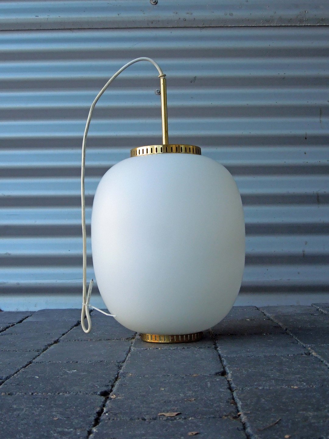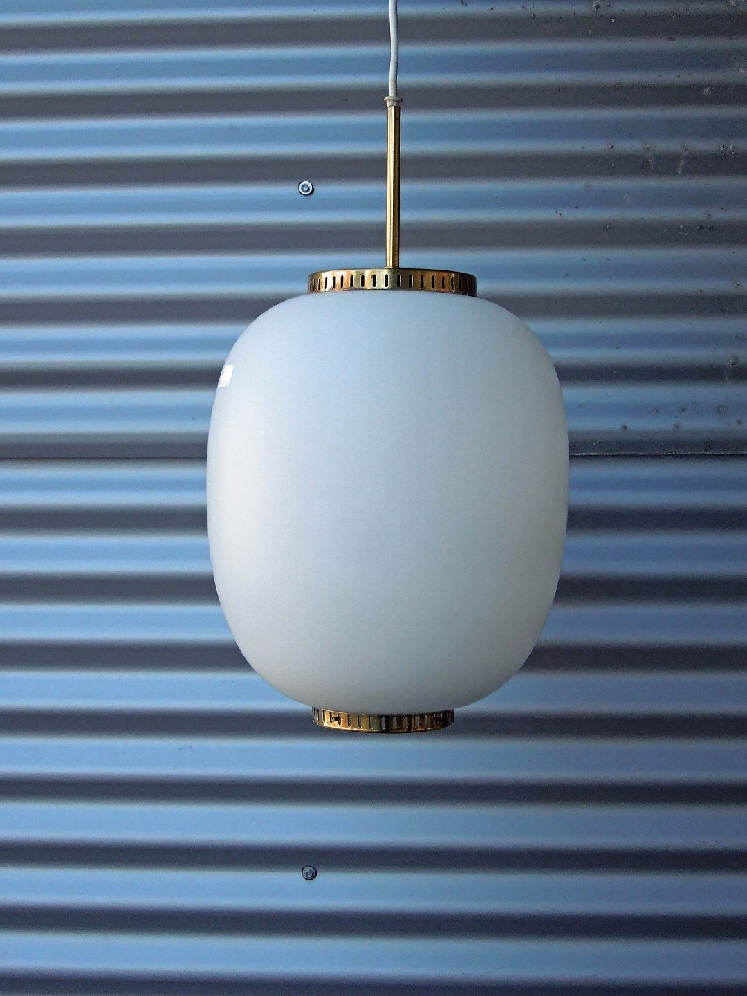 Pendlen er af hvidt opalglas, montage af messing.