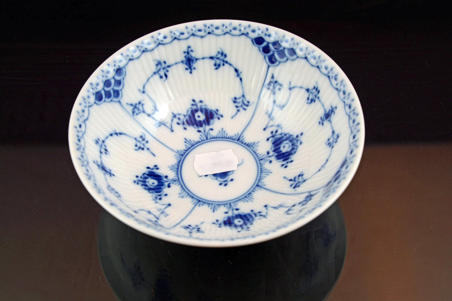 Kongelig skål (nr.1/624) i musselmalet halvblonde fra Royal Copenhagen. Intakt. 1. sort.
