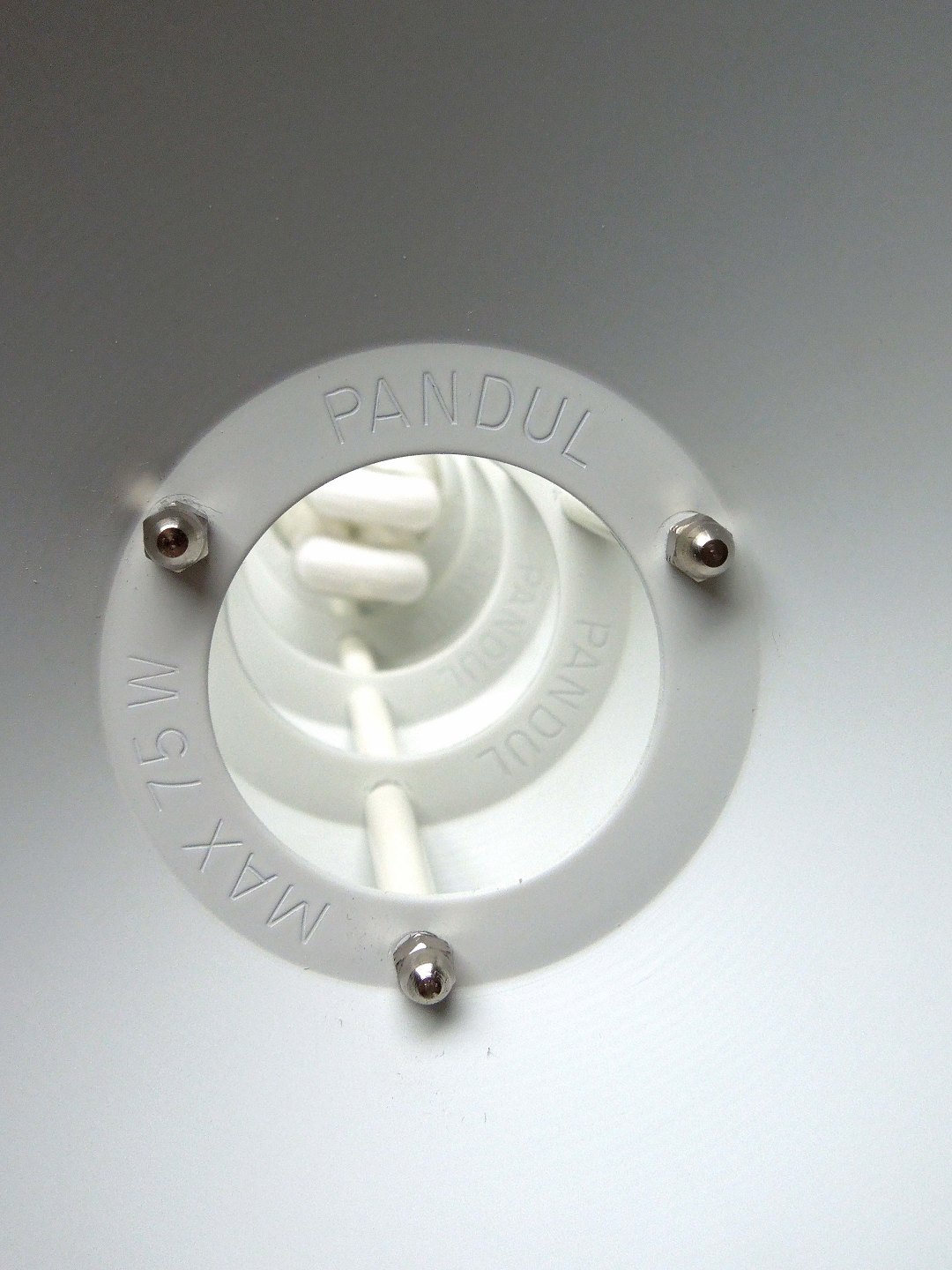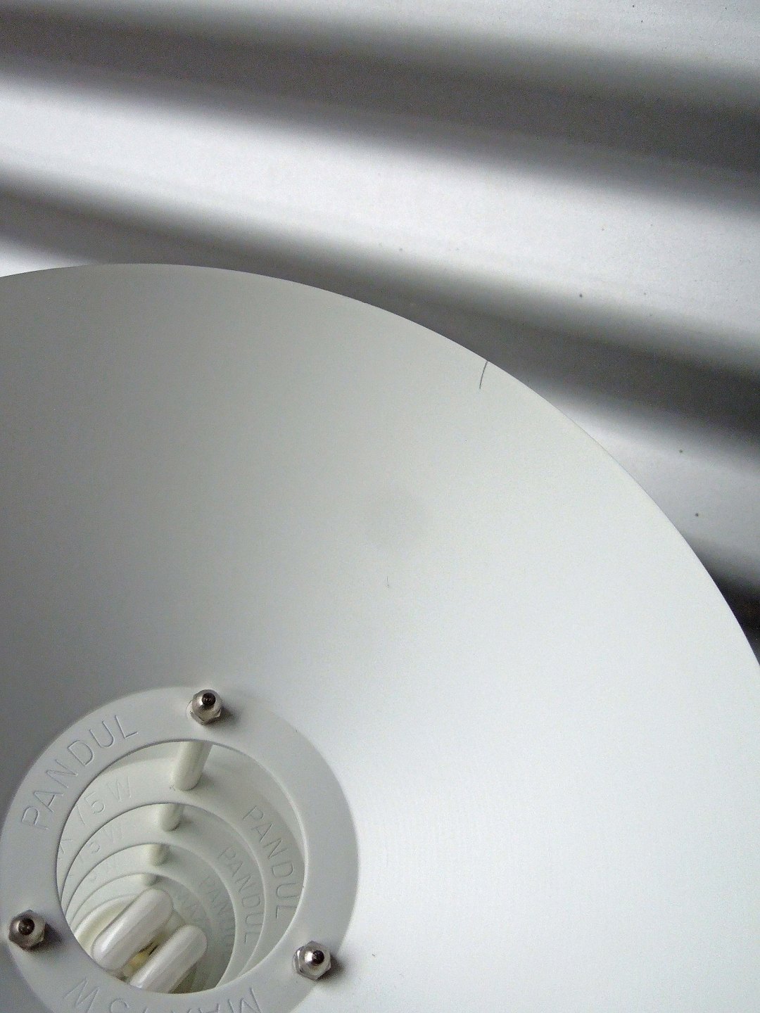 Loftslampe. En hvid TIP TOP pendel i hvidlakeret metal. designet af Jørgens Gammelgård for Pandul. Fremstår med mindre brugsspor - enkelte ridser.