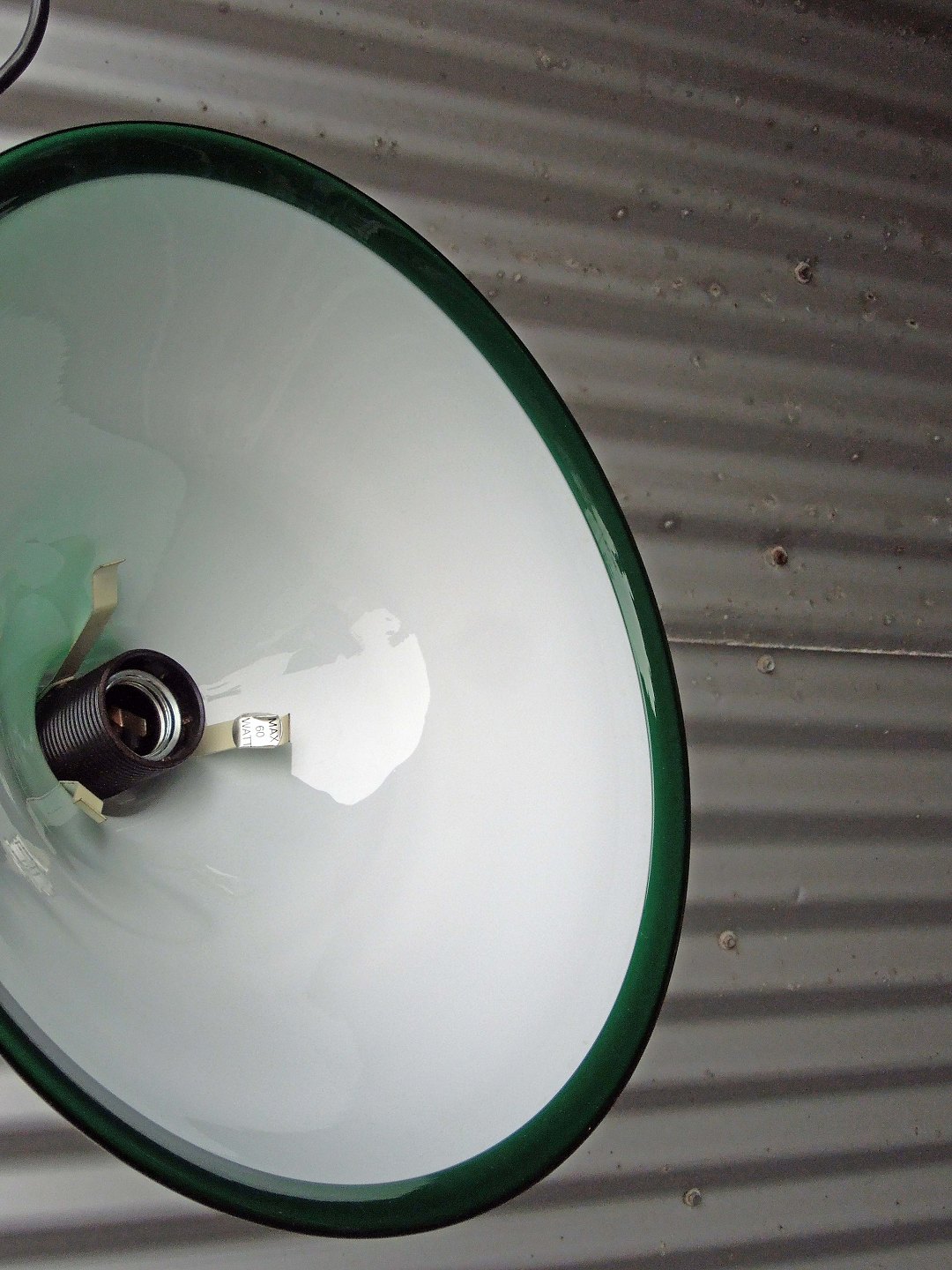 Holmegaard P&T pendel, med grønt overfangsglas med hvid glas indvendig.
