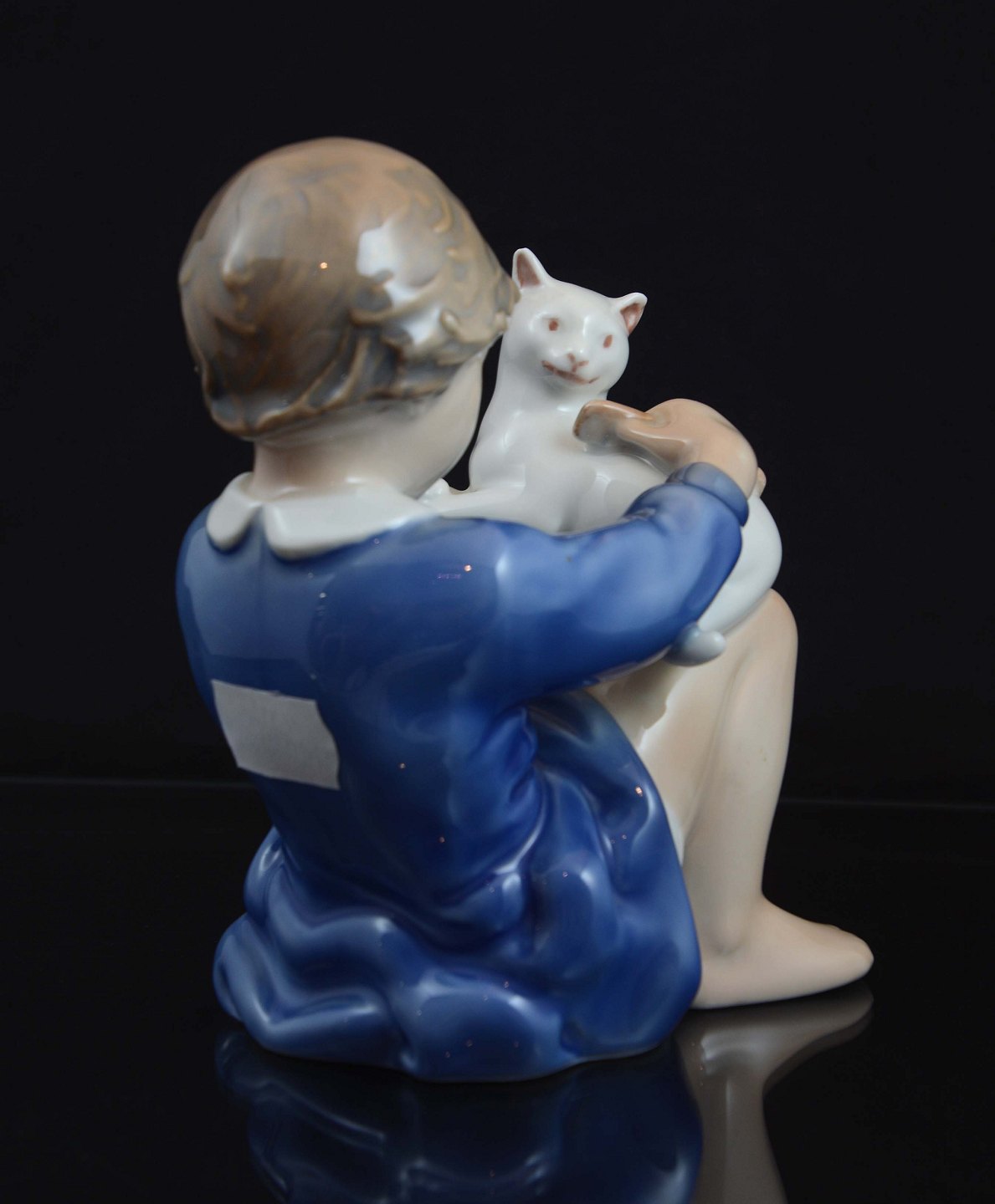Kongelig figur med motiv af Pige med kat (nr. 4631) af John Calster for Royal Copenhagen.