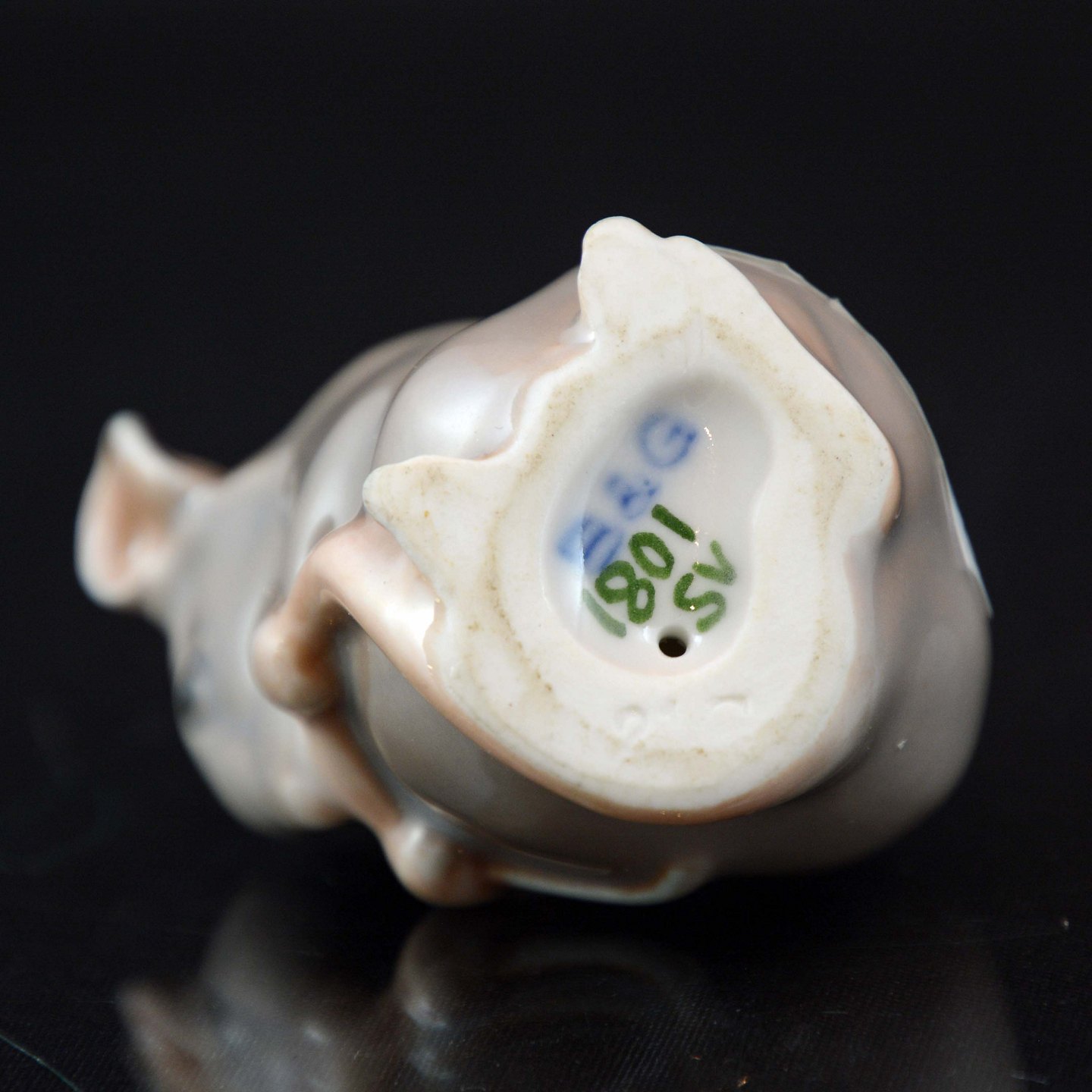 Porcelænsfigur 'Grå mus' (nr. 1801) af Dahl-Jensen for Bing og Grøndahl