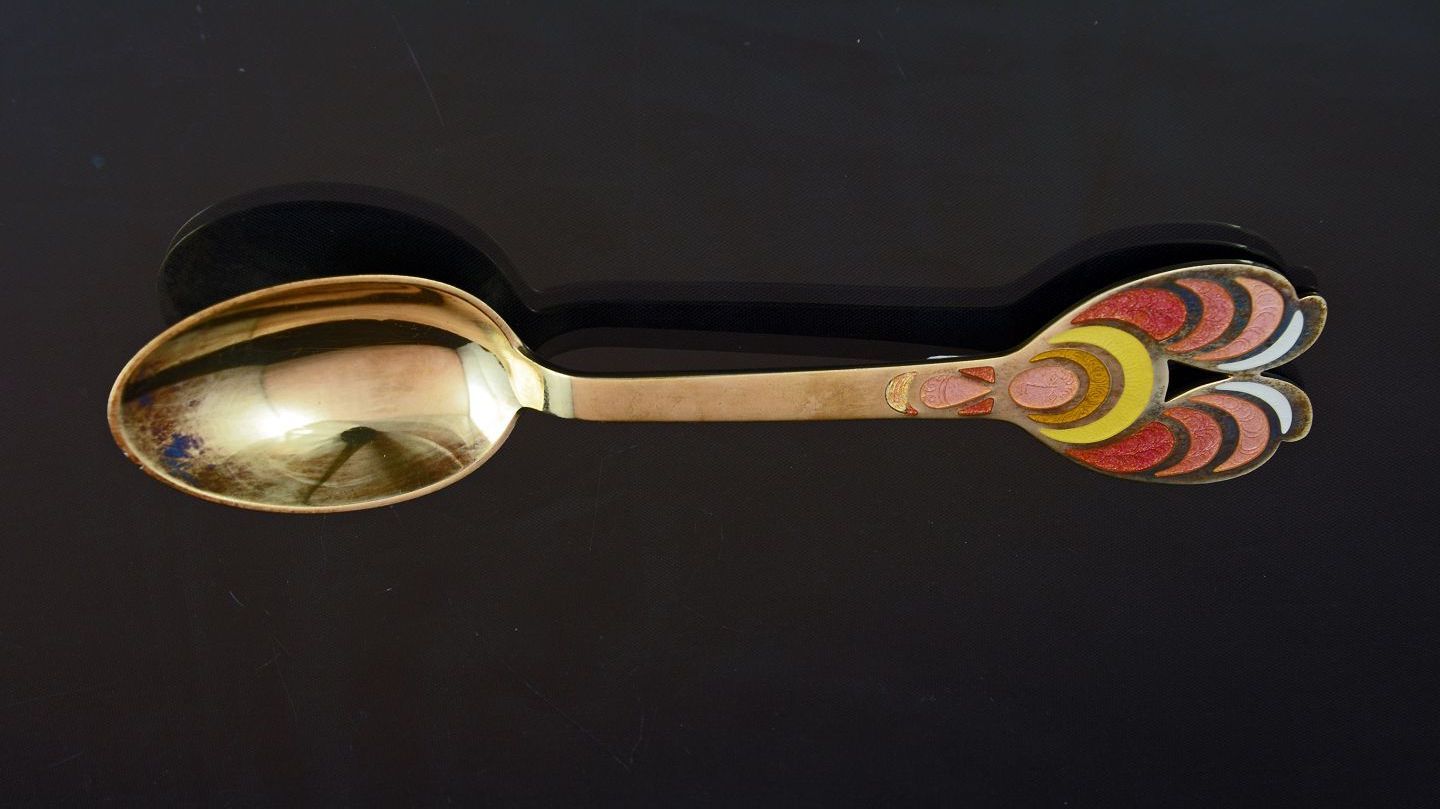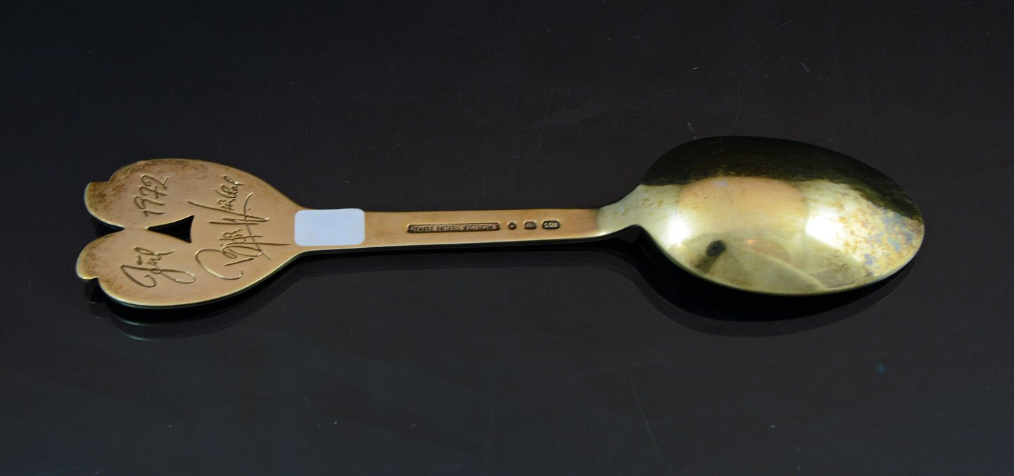 L. 16 cm. i forgyldt sterling sølv med brugsspor