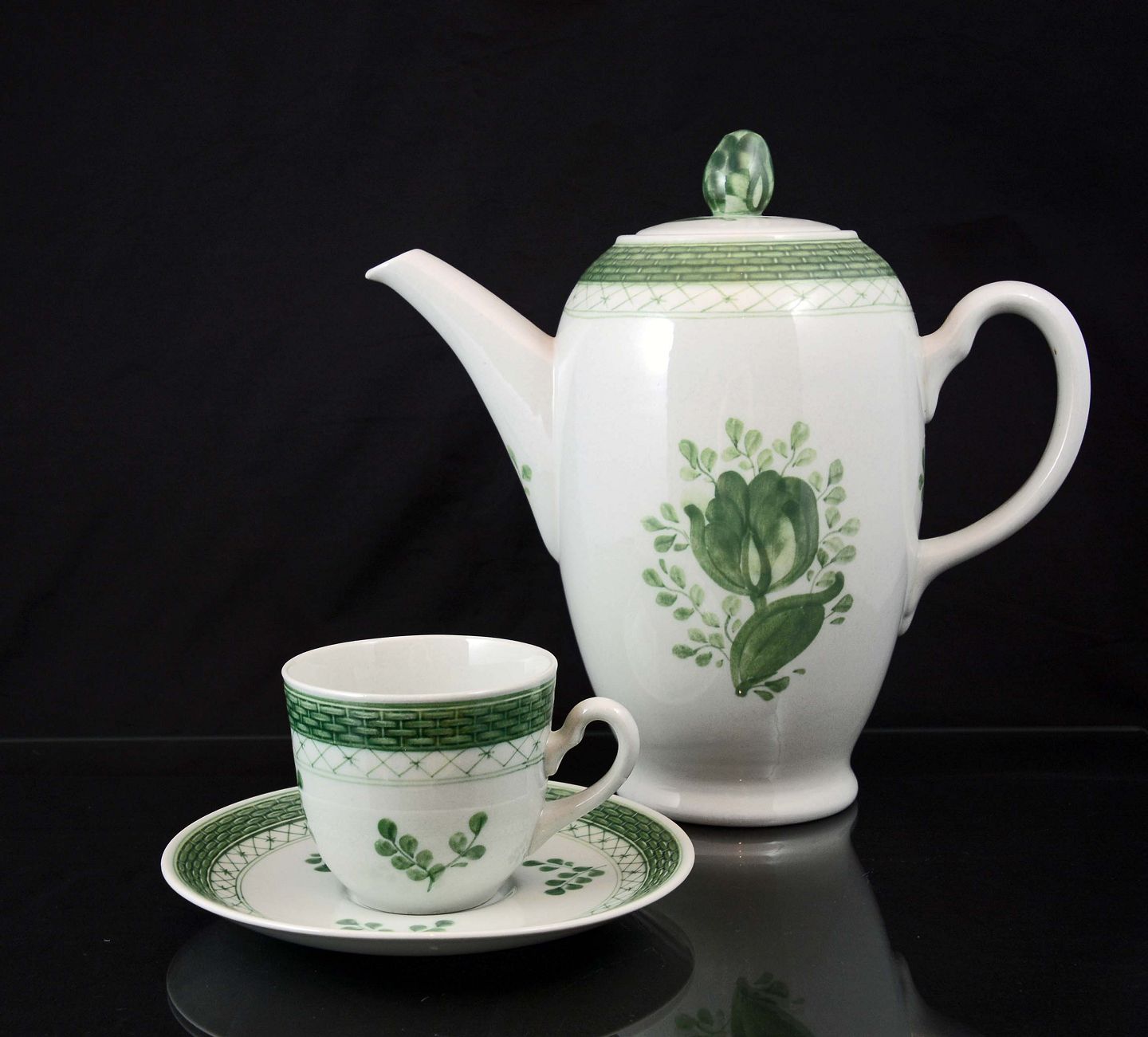 Grøn tranquebar stel fra Aluminia/RC fajance fra år 1919
