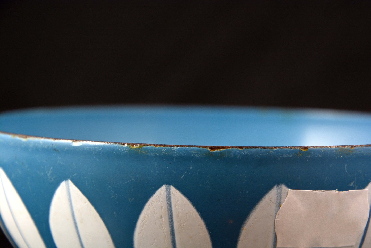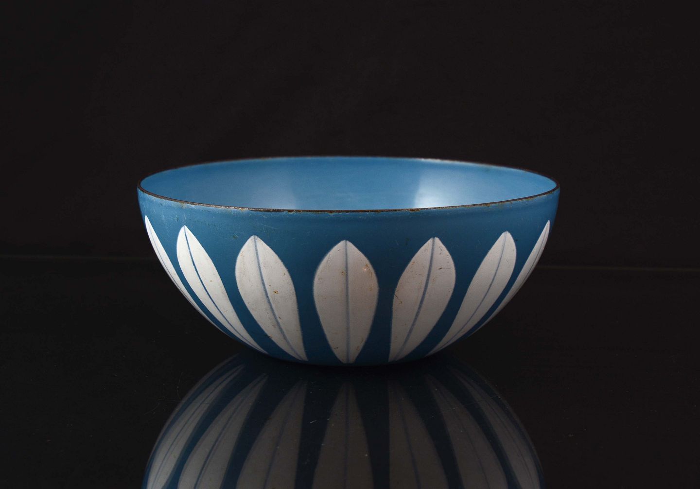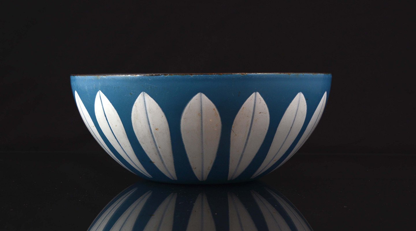 Blå Lotus emaljeskål fra Cathrineholm og Lyngby.