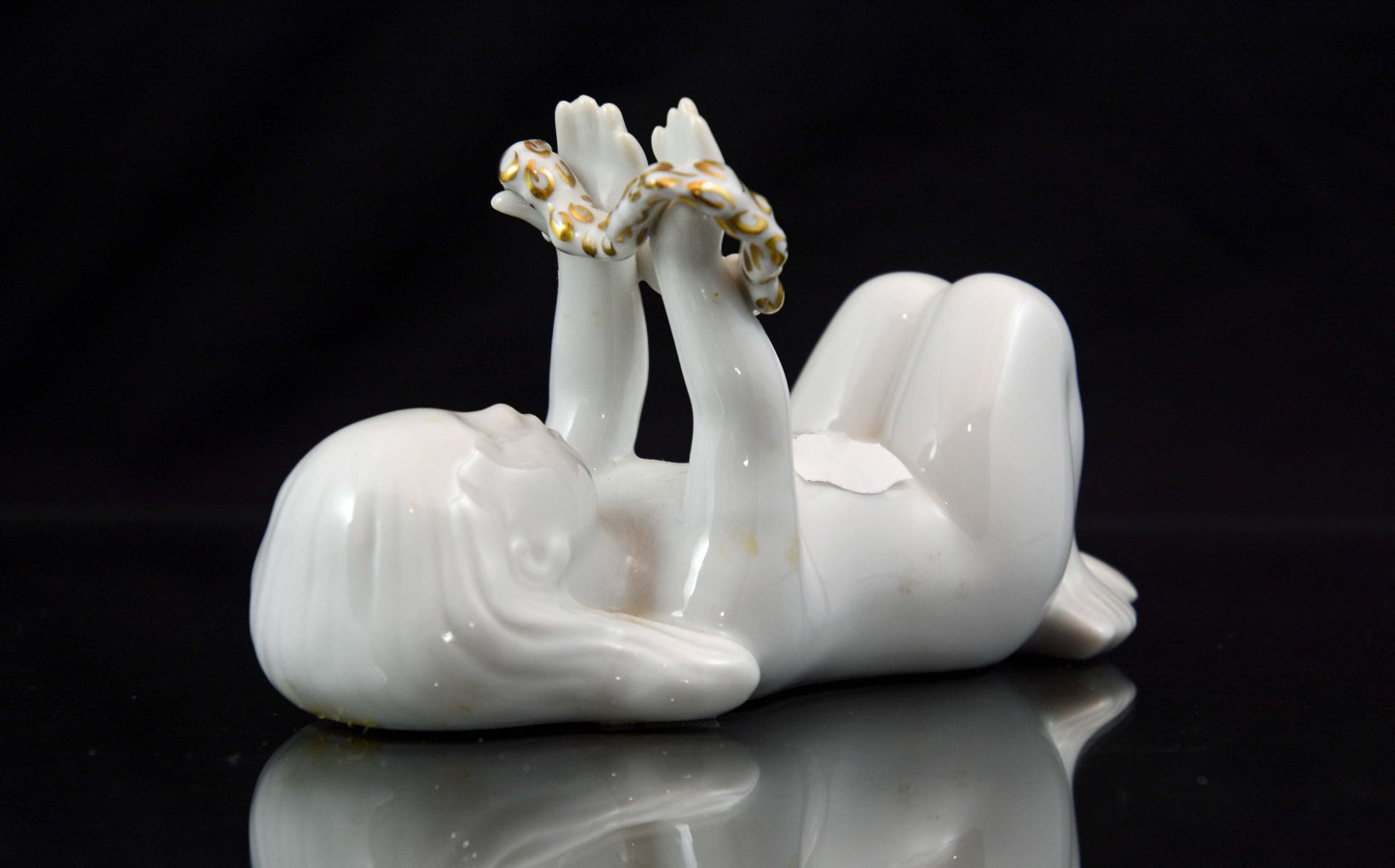 "Havpige - liggende" (nr.2314) designet af Ebbe Sadolin/Svend Jespersen for Bing og Grøndahl.