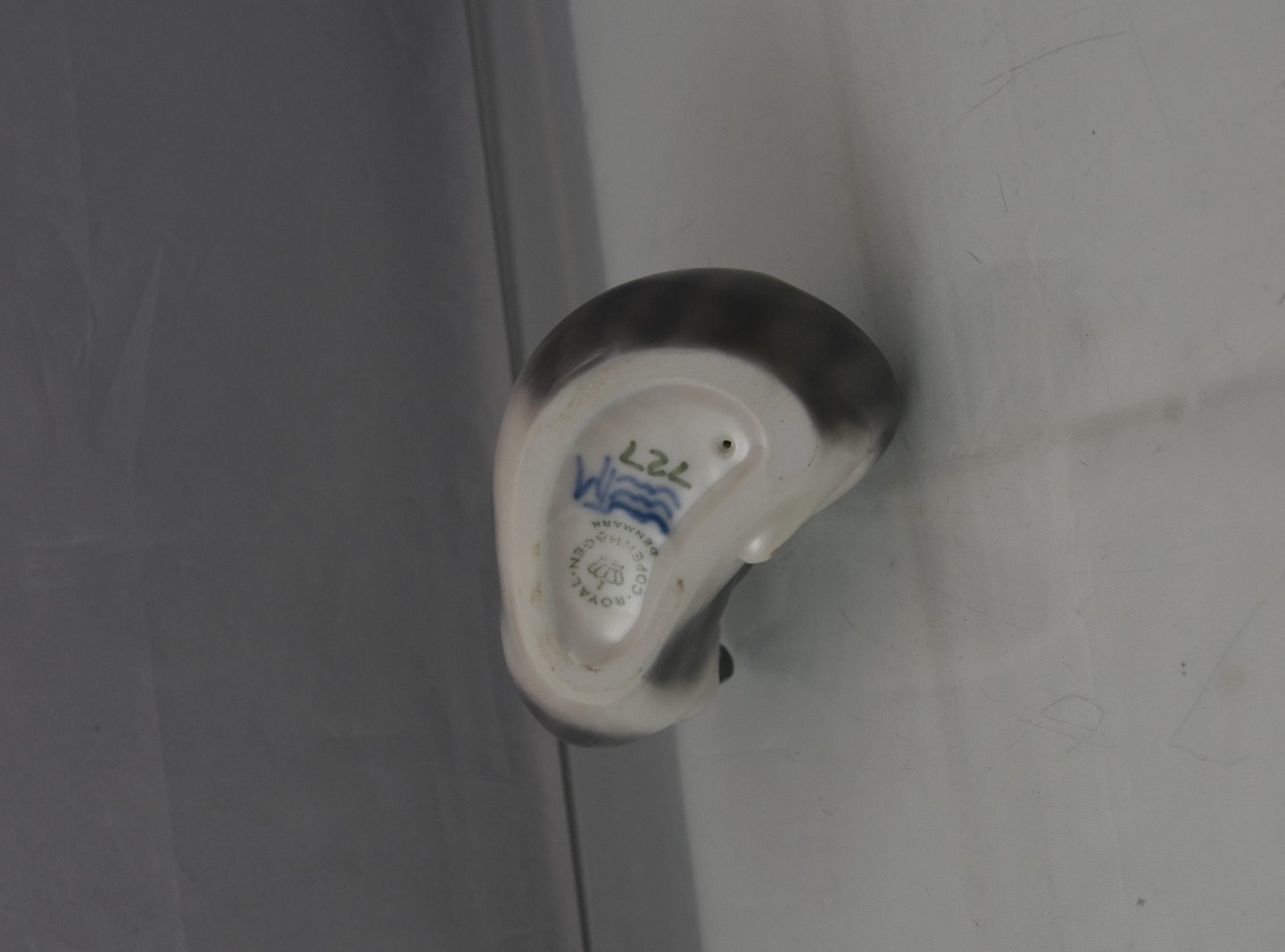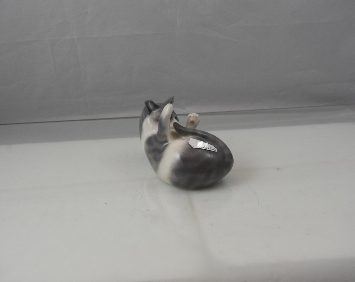 Kgl porcelænsfigur 'legende kat`(nr. 727) designet af A. Nielsen for Royal Copenhagen. 1. sort