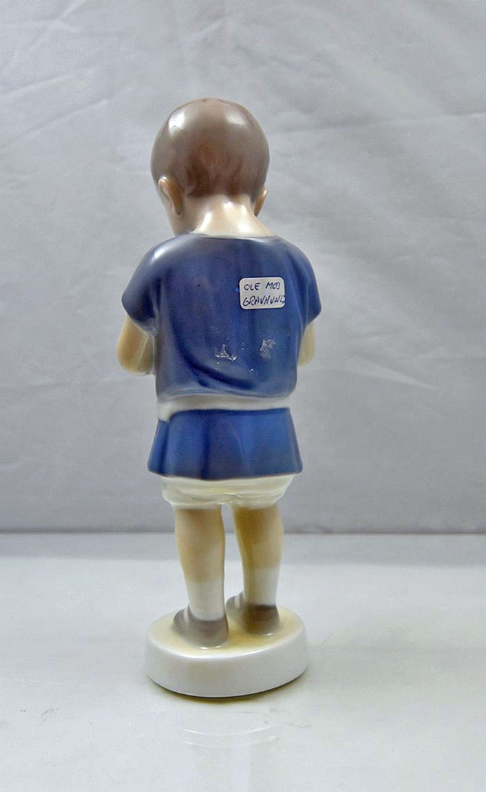 "Ole" (nr. 1619) designet af Ingeborg Plockross Irminger for Bing og Grøndahl. Dreng med bamse motiv.