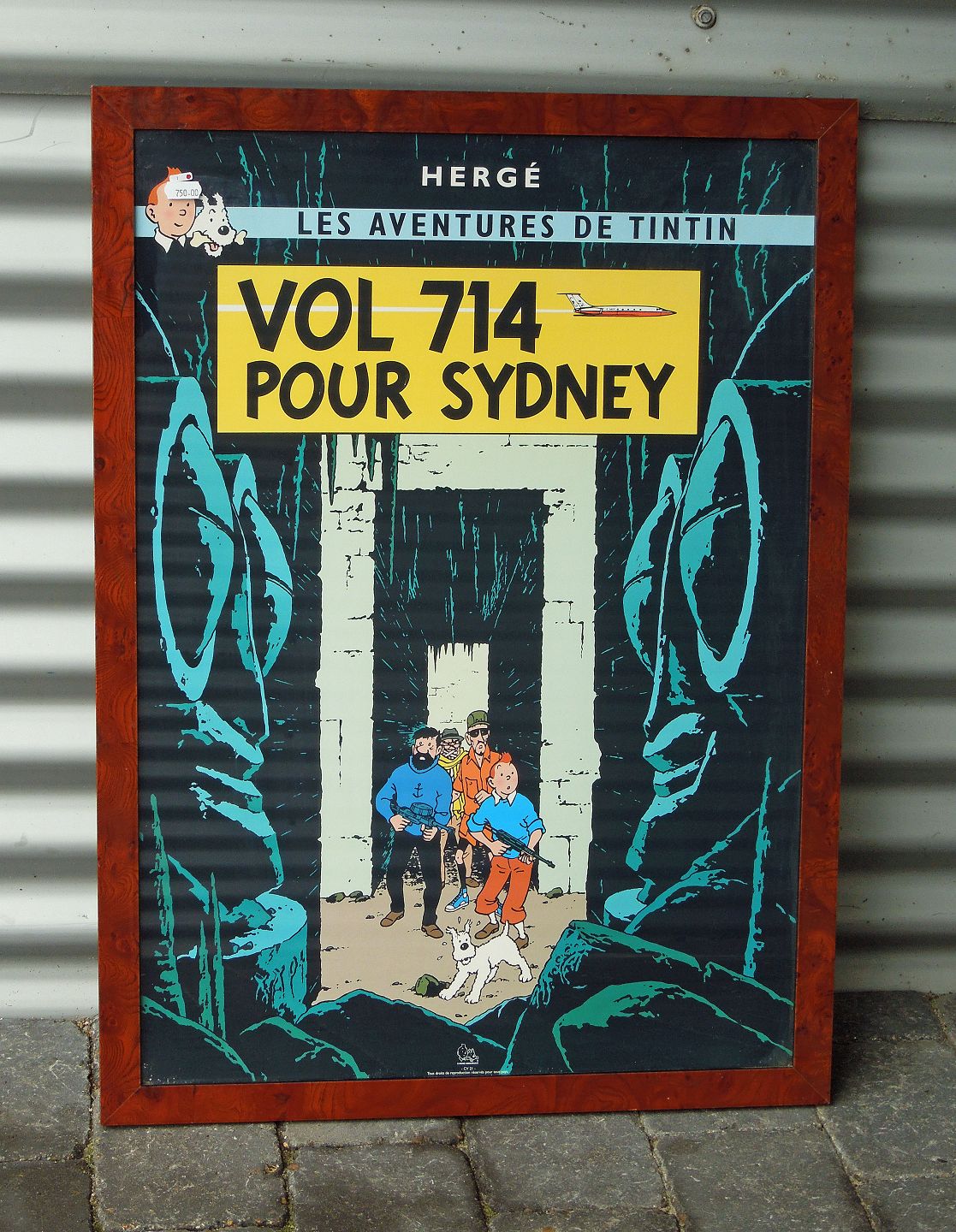 Tintin plakat af Herge med skriften "Les aventures de Tintin Vol 714 Pour Sydney"