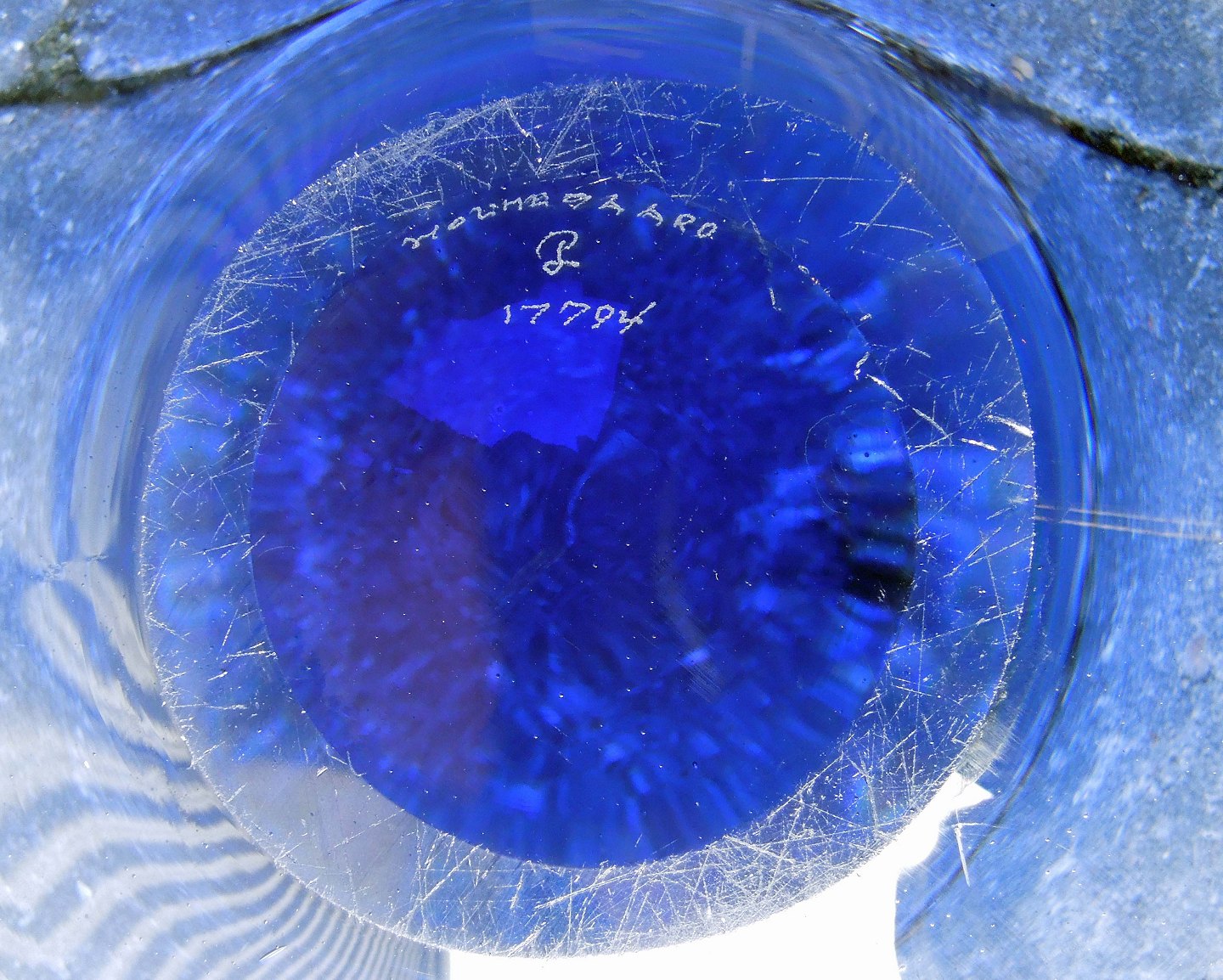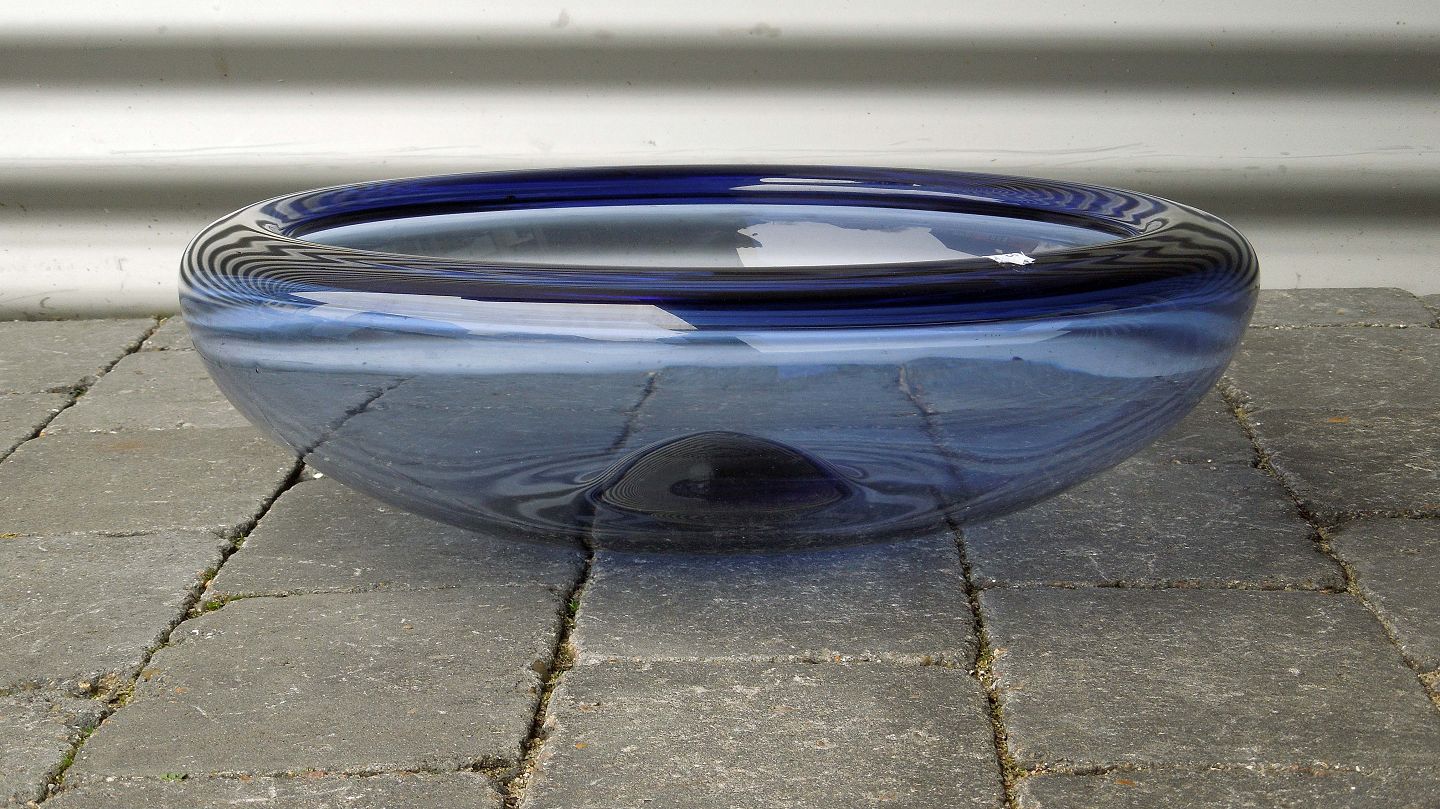 Stor`Provence´ skål, nr. 17794 i klart blåt glas. Skålen er designet at Per Lütken for Holmegaard.
