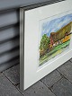 Indrammet Akvarel med motiv af Ulstrupgård fra 1999 af Mona Jørgensen. Signeret.