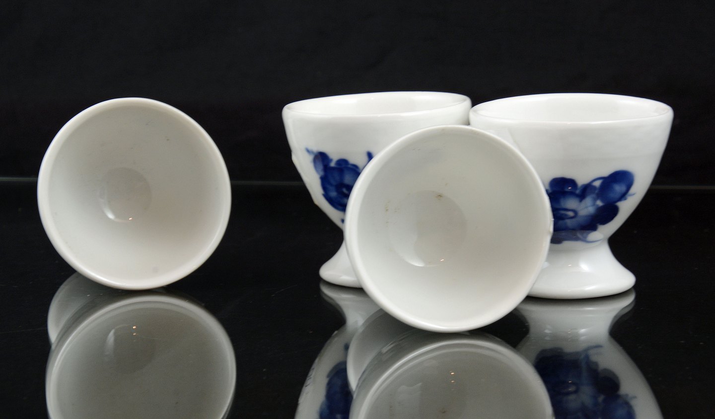 Fire kongelige Blå blomst æggebægere (nr. 10/8125) fra Royal Copenhagen, Denmark.