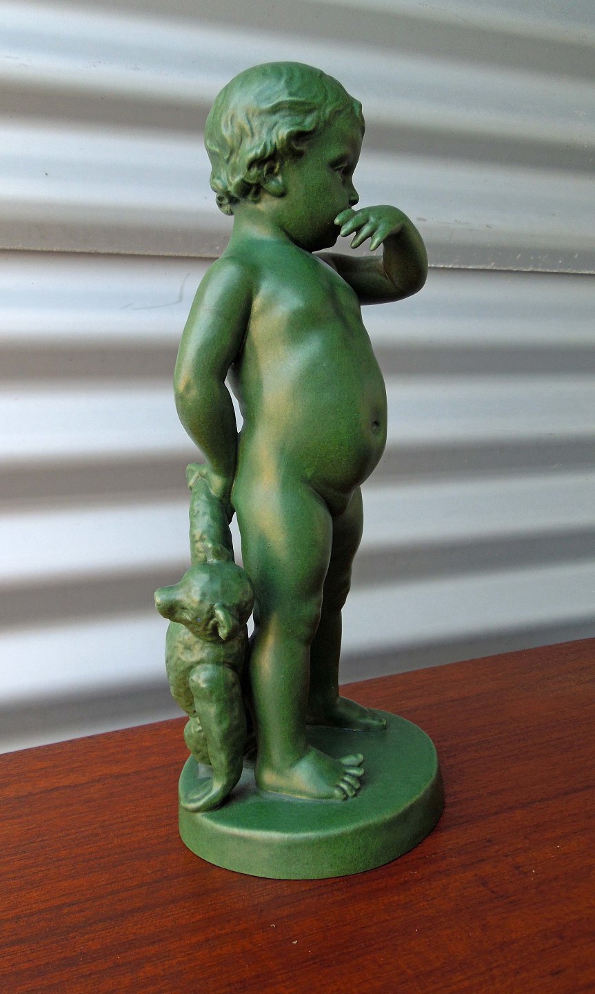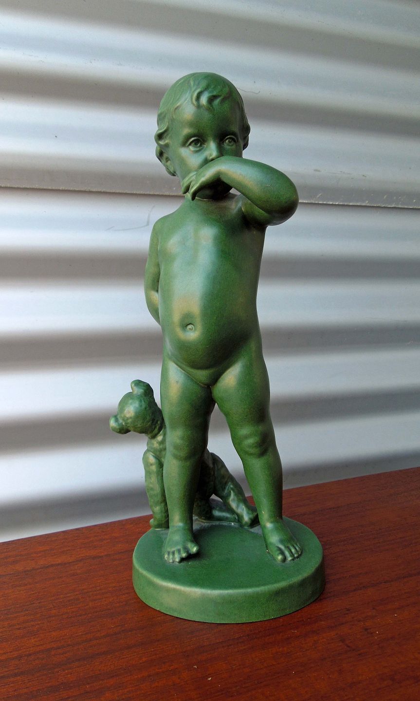 Figur af Dreng med bamse (nr. 68 XII) af Adda Bonfils for Ipsens Enke.