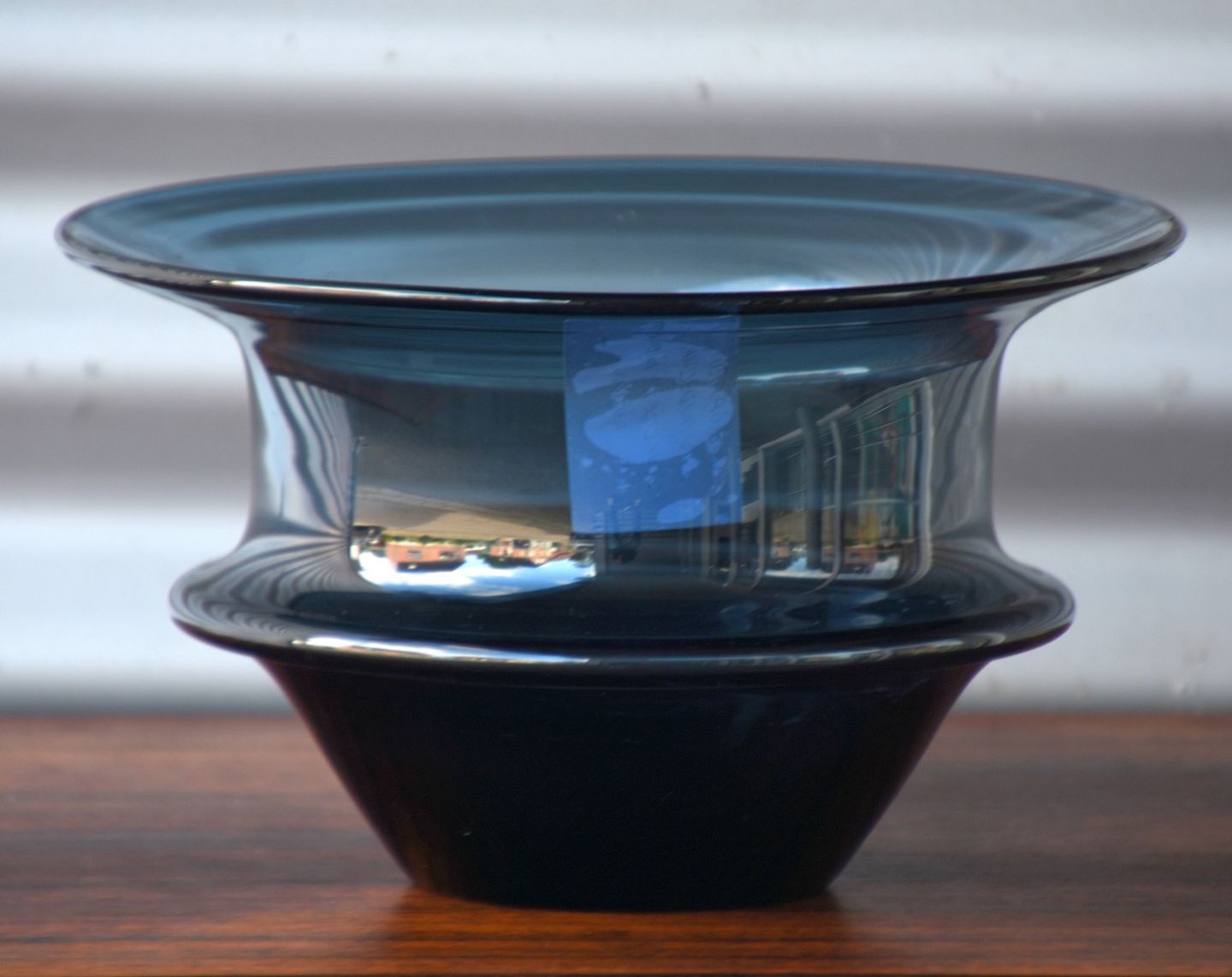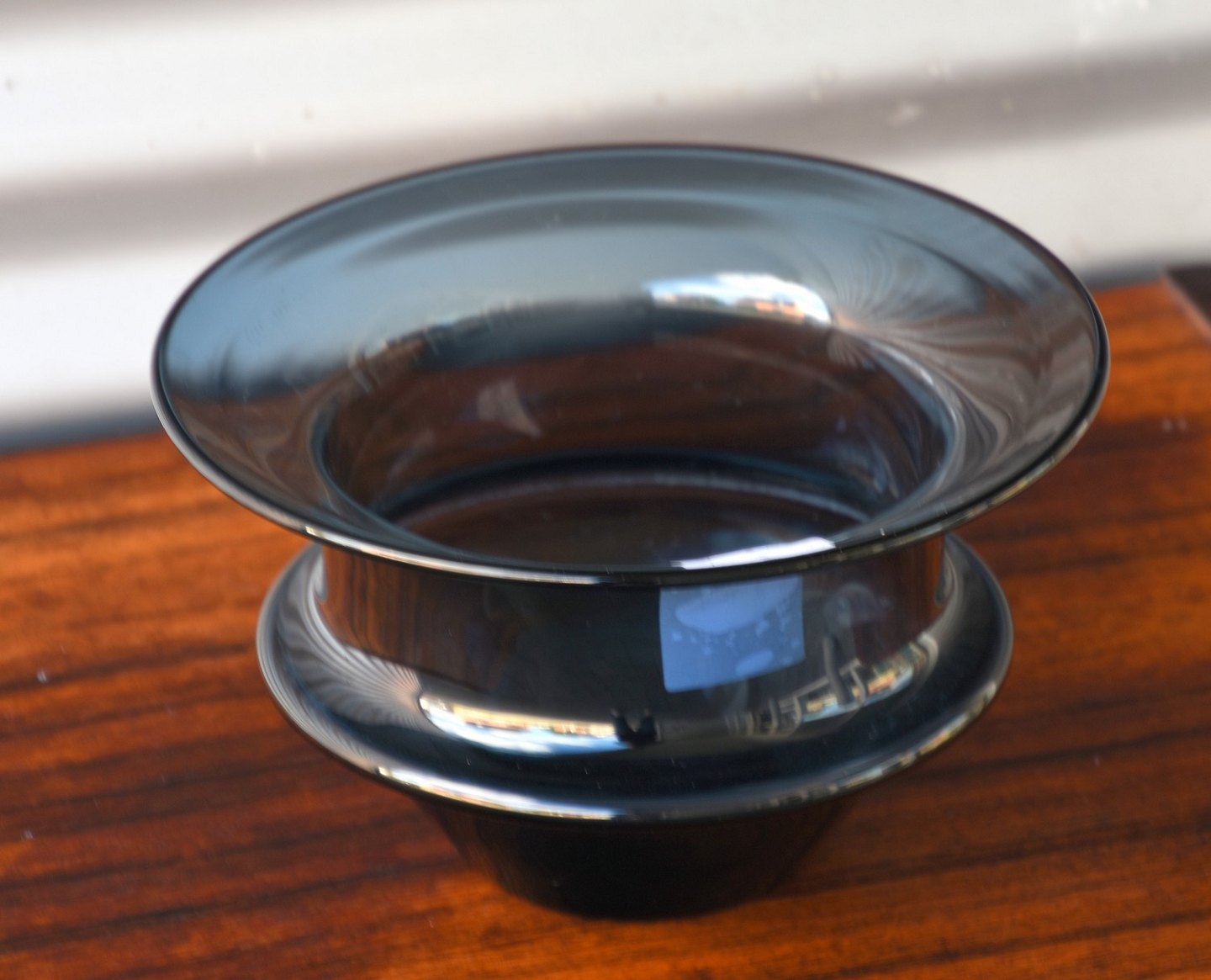 Lavendelskål i mørkeblå glas af Per Lytken 1967, Holmegaard, produceret på Fyns Glasværk Lidt brugsspor