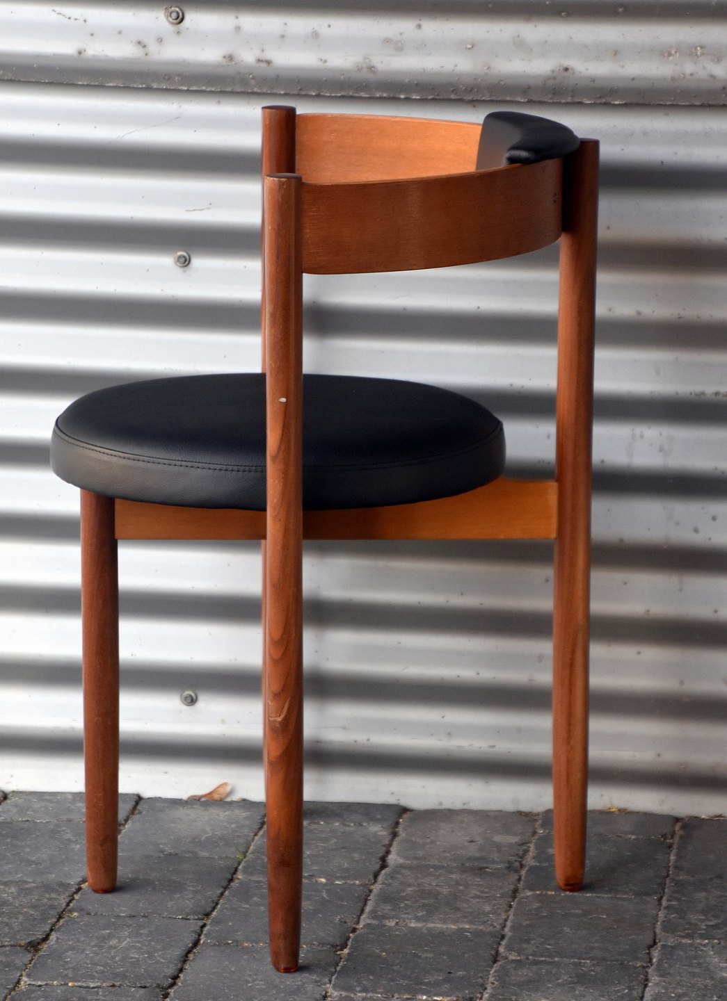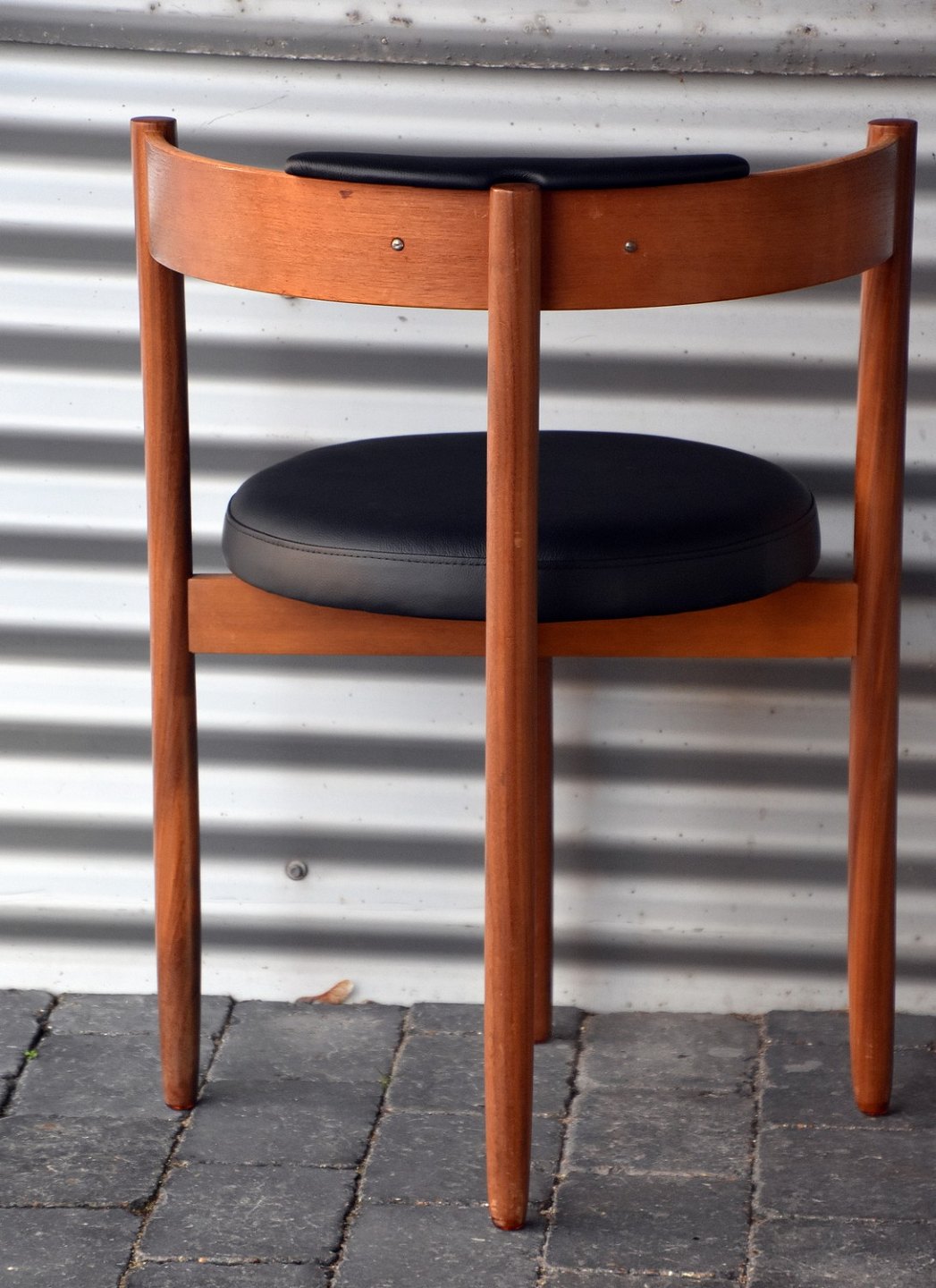 Arm Teaktræsstol, dansk møbel design, Hugo Frandsen, produceret af Børge M Søndergaard, stolen er nyrenoveret med lædersæde.