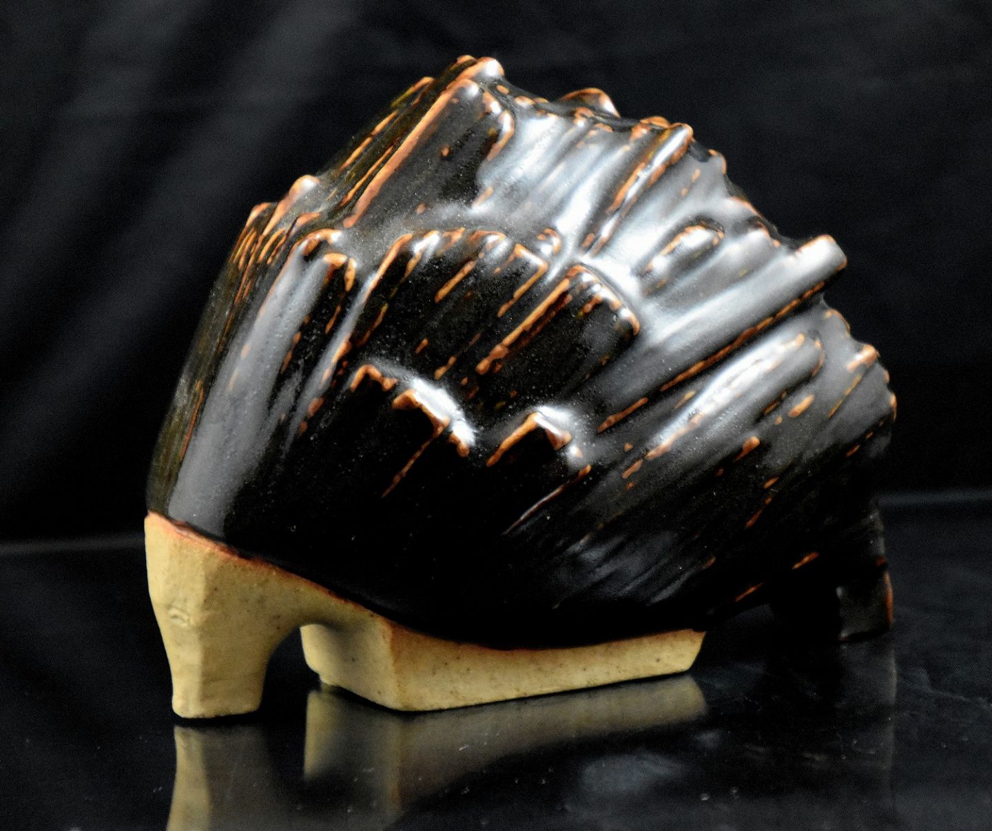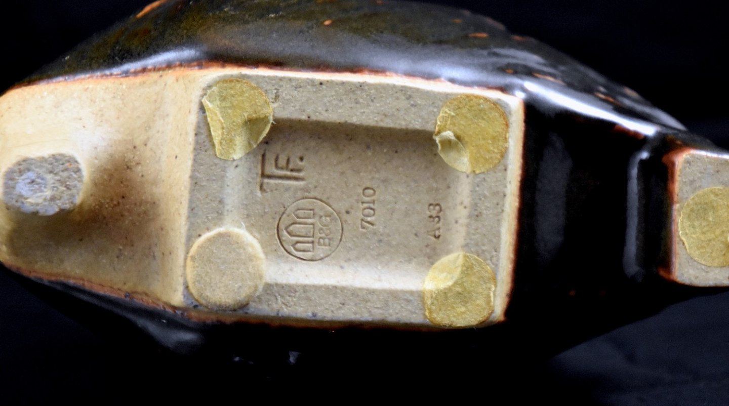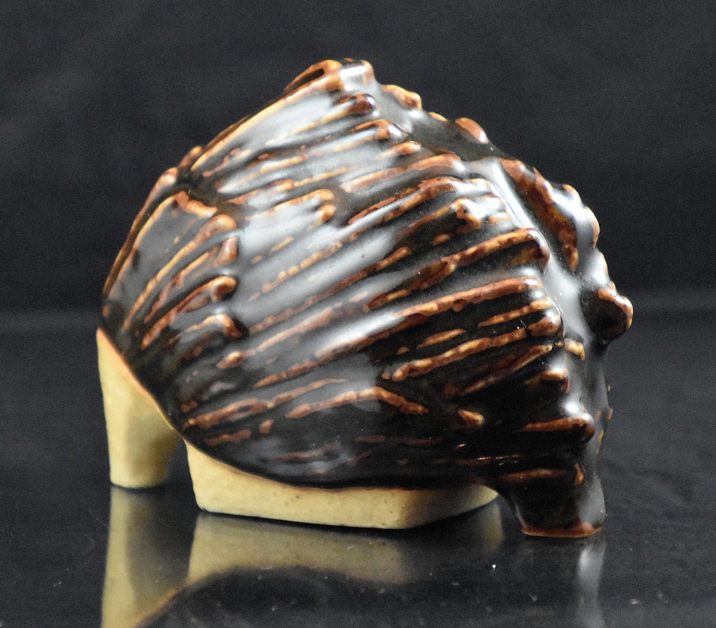 Bing og Grøndahl stor pindsvin i stentøj (7010) med brun glassur.