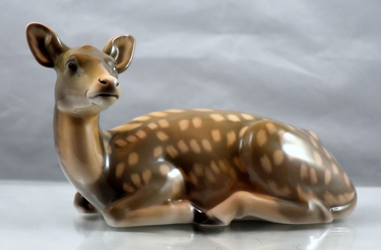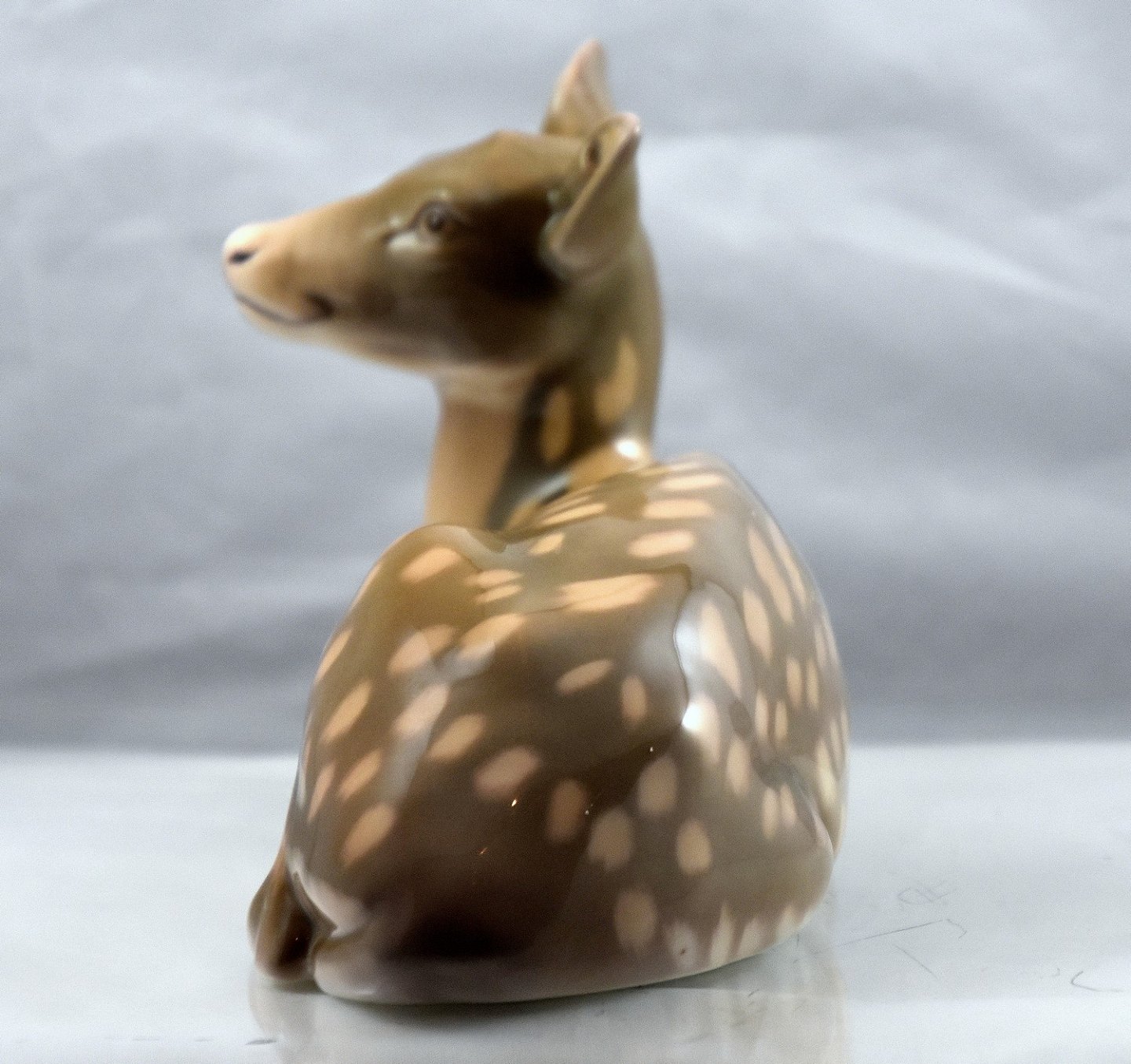 Bing og Grøndahl figur Dådyr der ligger (1930) brun med lyse pletter på ryggen.