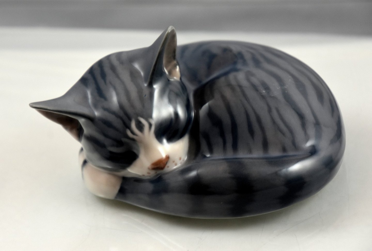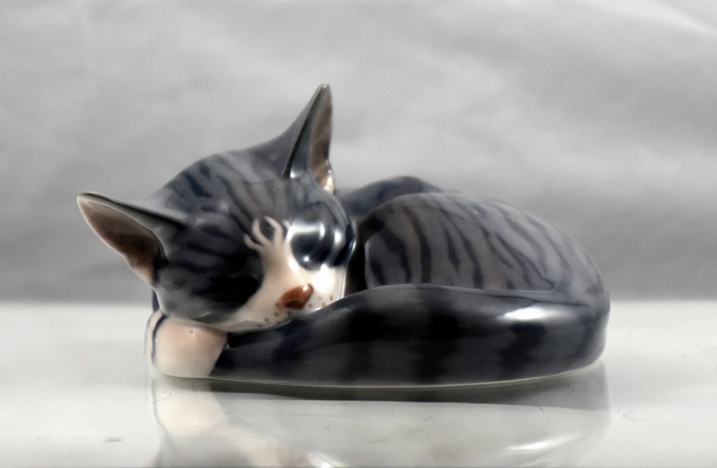 Kongelig figur Kat der sover af Erik Nielsen 1025 for Royal Copenhagen.
