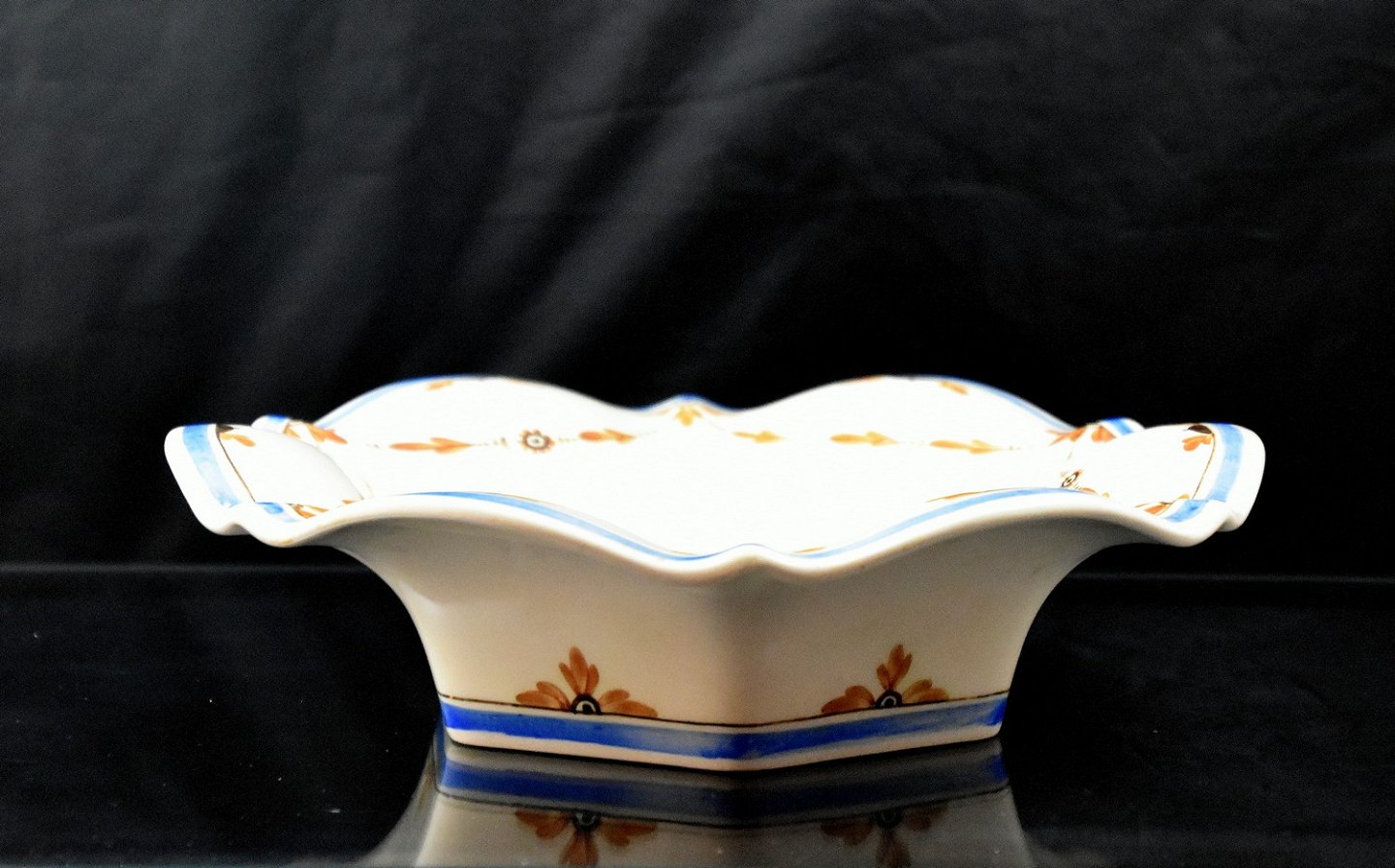 Rundt fajancefad fra Kgl./Aluminia, dekoreret med egern i bunden, der er en blå bølget kant på fadet (1436/1012) ja mystisk ligner kunstserien Efterår af Nils Thorsson, 1925-29, men kan ikke finde den på listen.