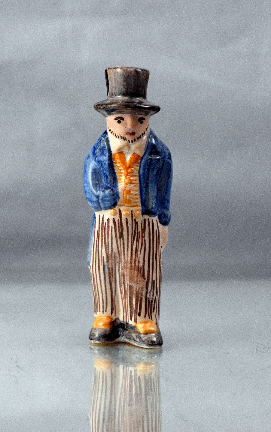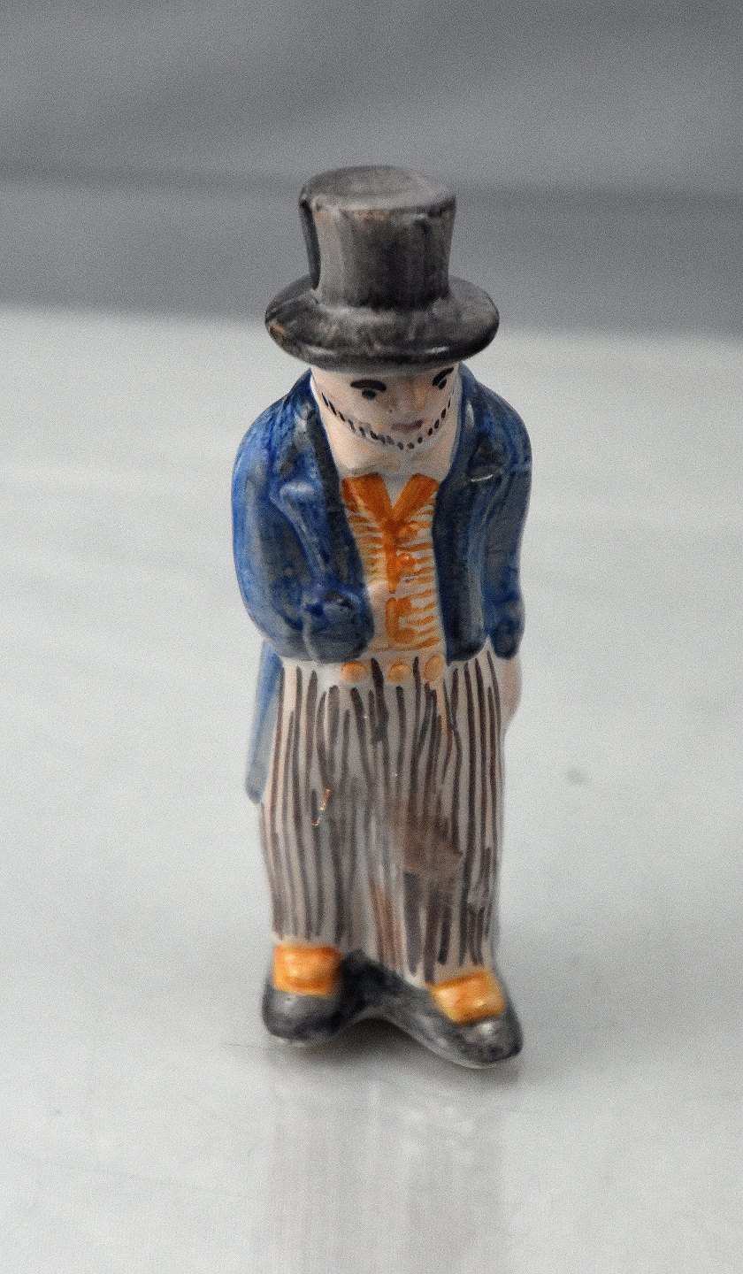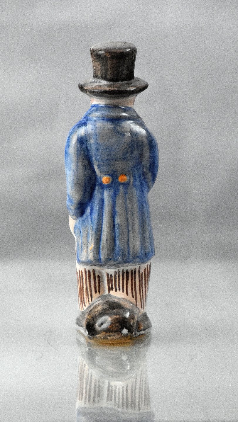 Figur i glaseret keramik med motiv af mand i bornholmsk egnsdragt