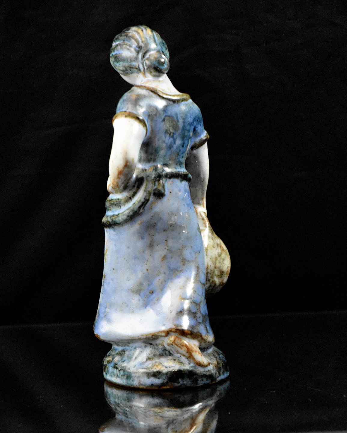 Rebecca / Rebekka figur i glaseret keramik med motiv af kvinde i blå kjole med krukke nr. 605