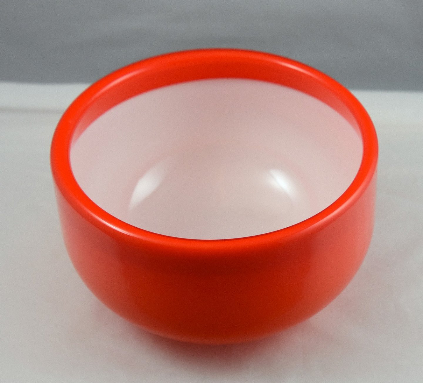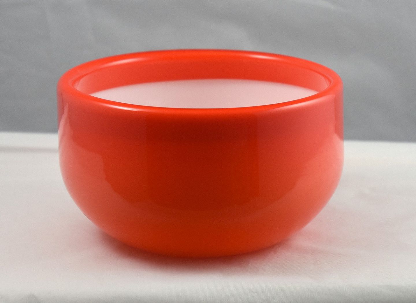 Holmegaard, palet, orange skål med opal hvid glas indvendig