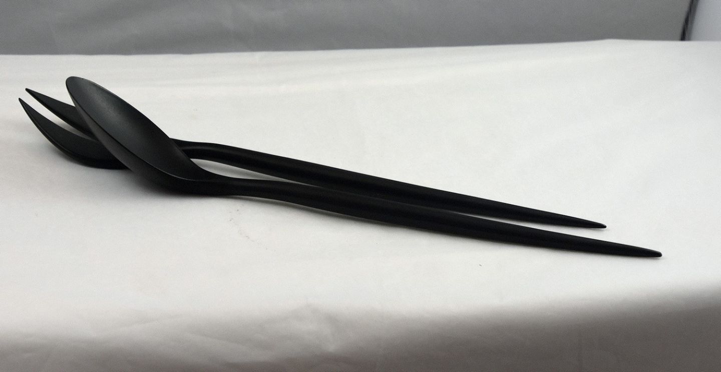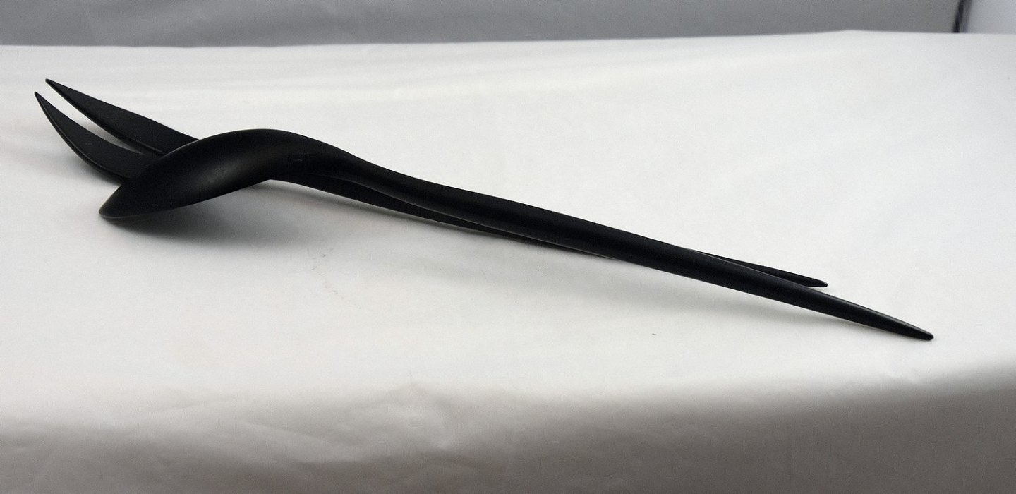 Krenit sort salatbestik, mærket "H krenchel Denmark"