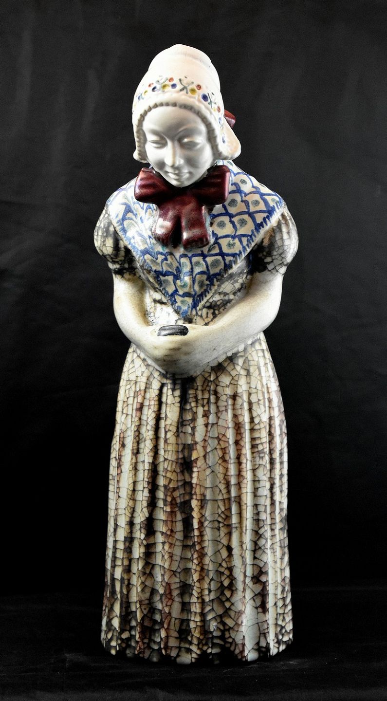Figur i glaseret keramik med motiv af stående kvinde med bønnebog nr. 4118/2