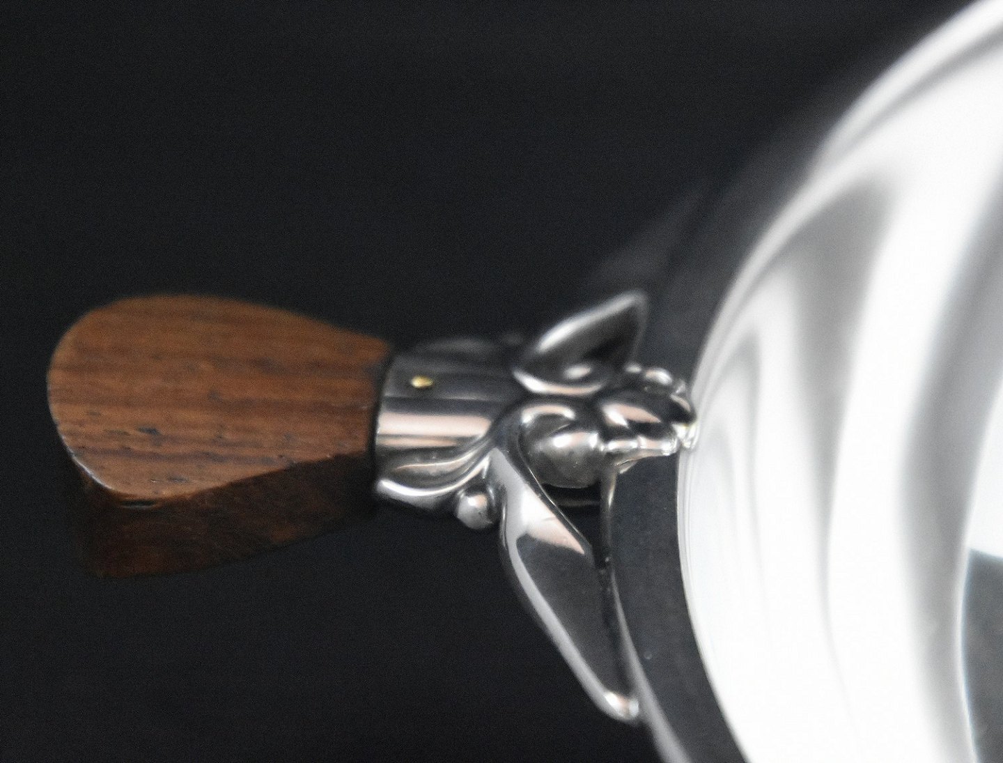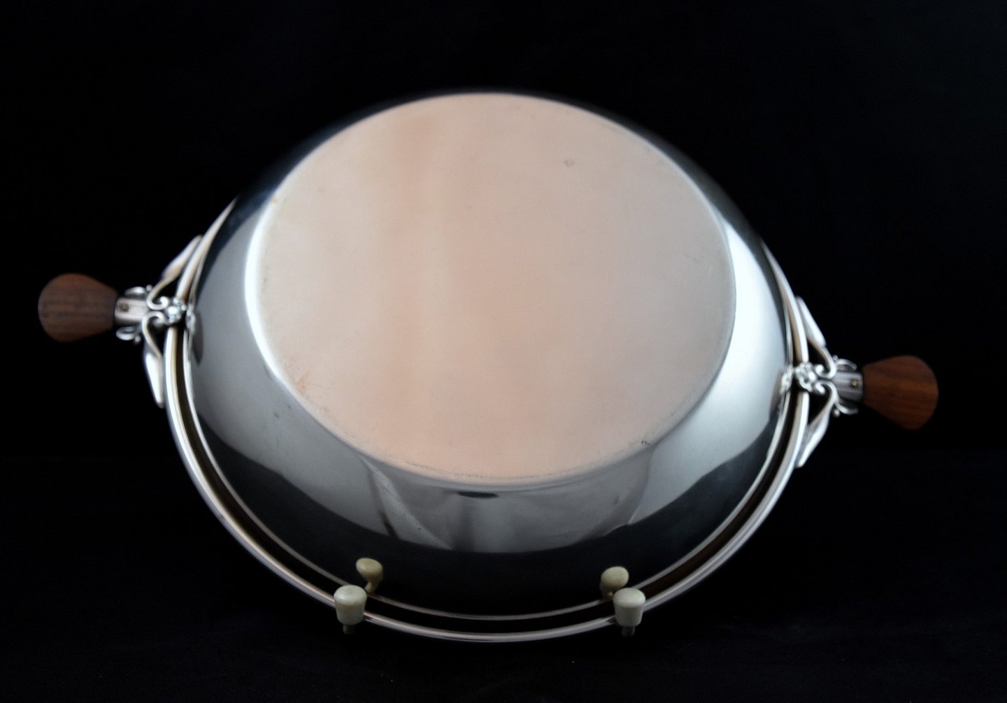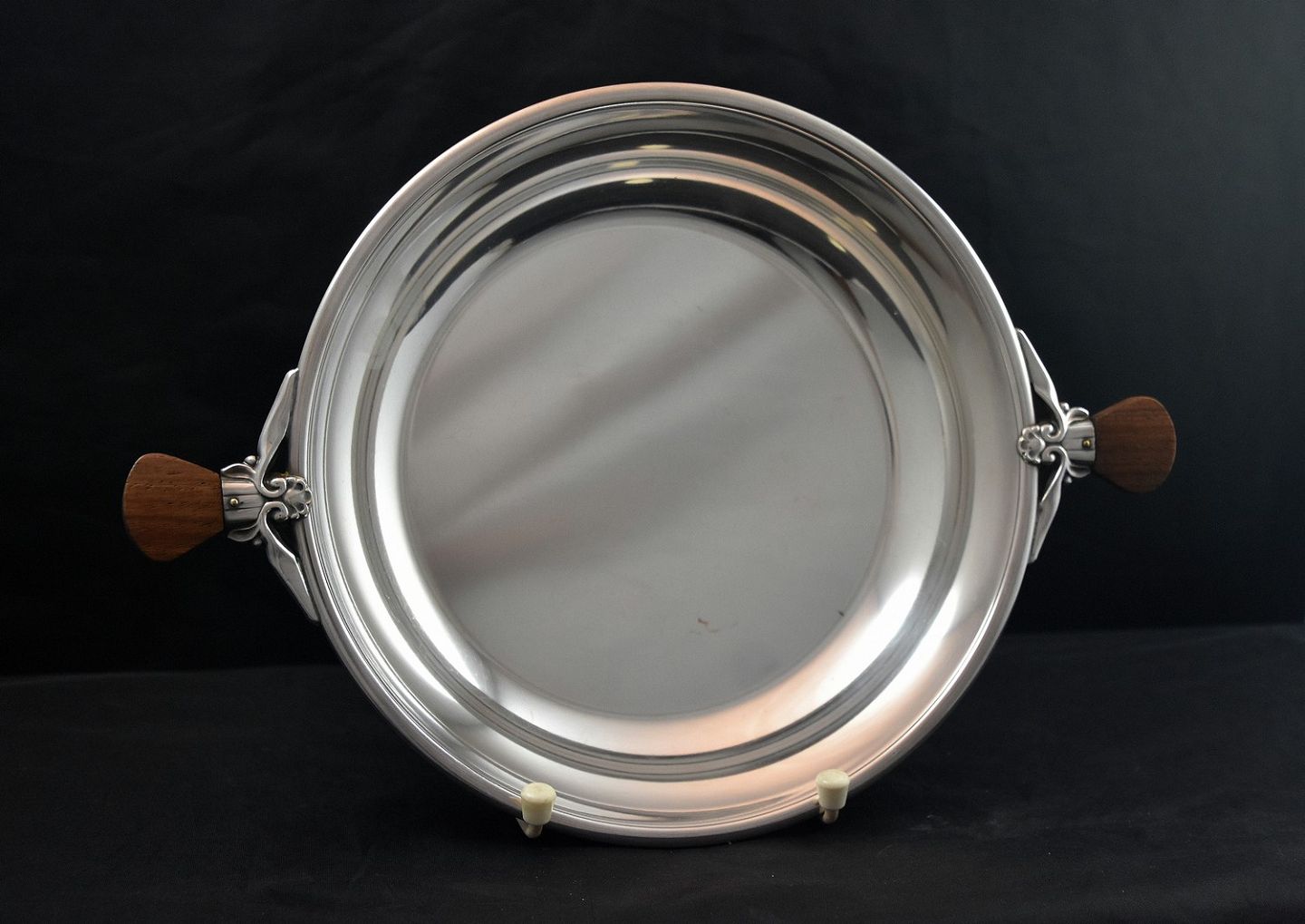 Sølvfad med teakhåndtag, ustemplet om det er sølv er usikker, men flot er den.
