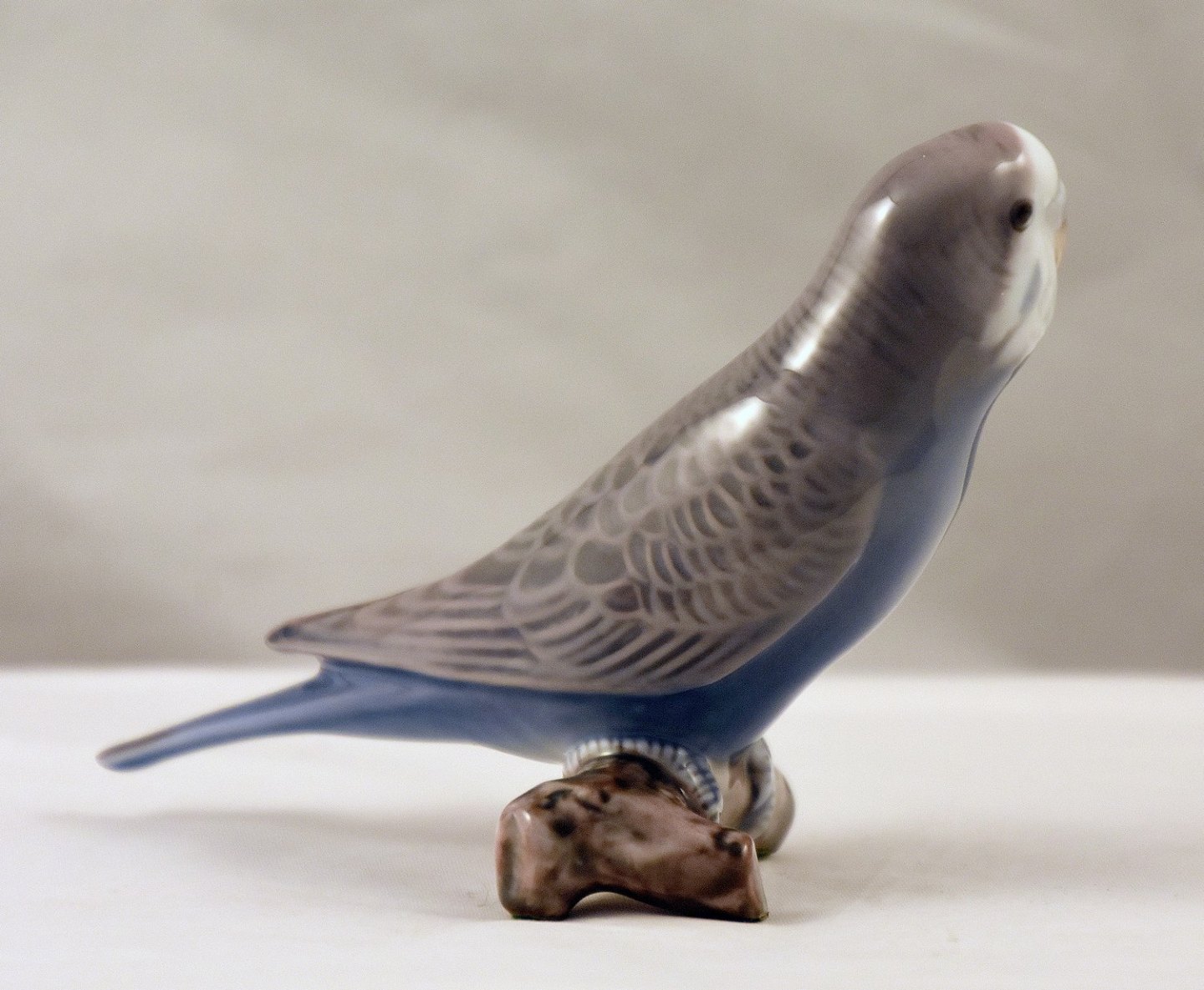Bing og Grøndahl fugl i porcelæn, blå undulat nr. 2210, undulaten er 1. sortering, Arkivfoto