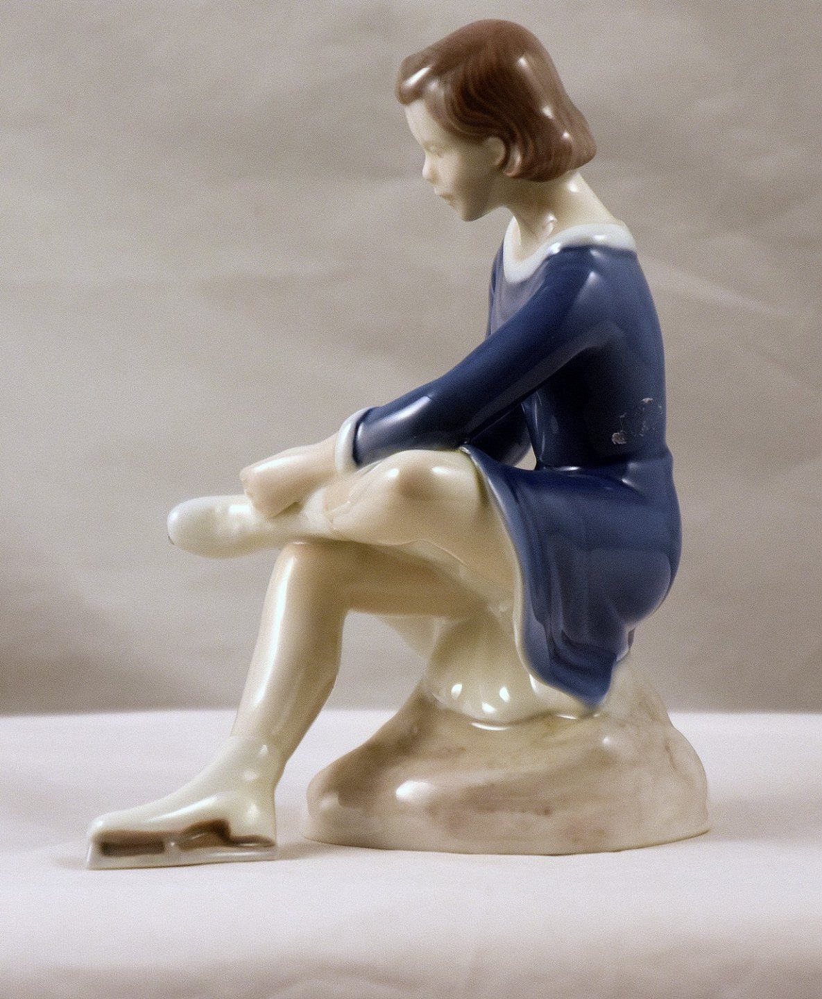 Bing & Grøndahl figur af Skøjtepige (2351). Blå kjole med hvid krave.
