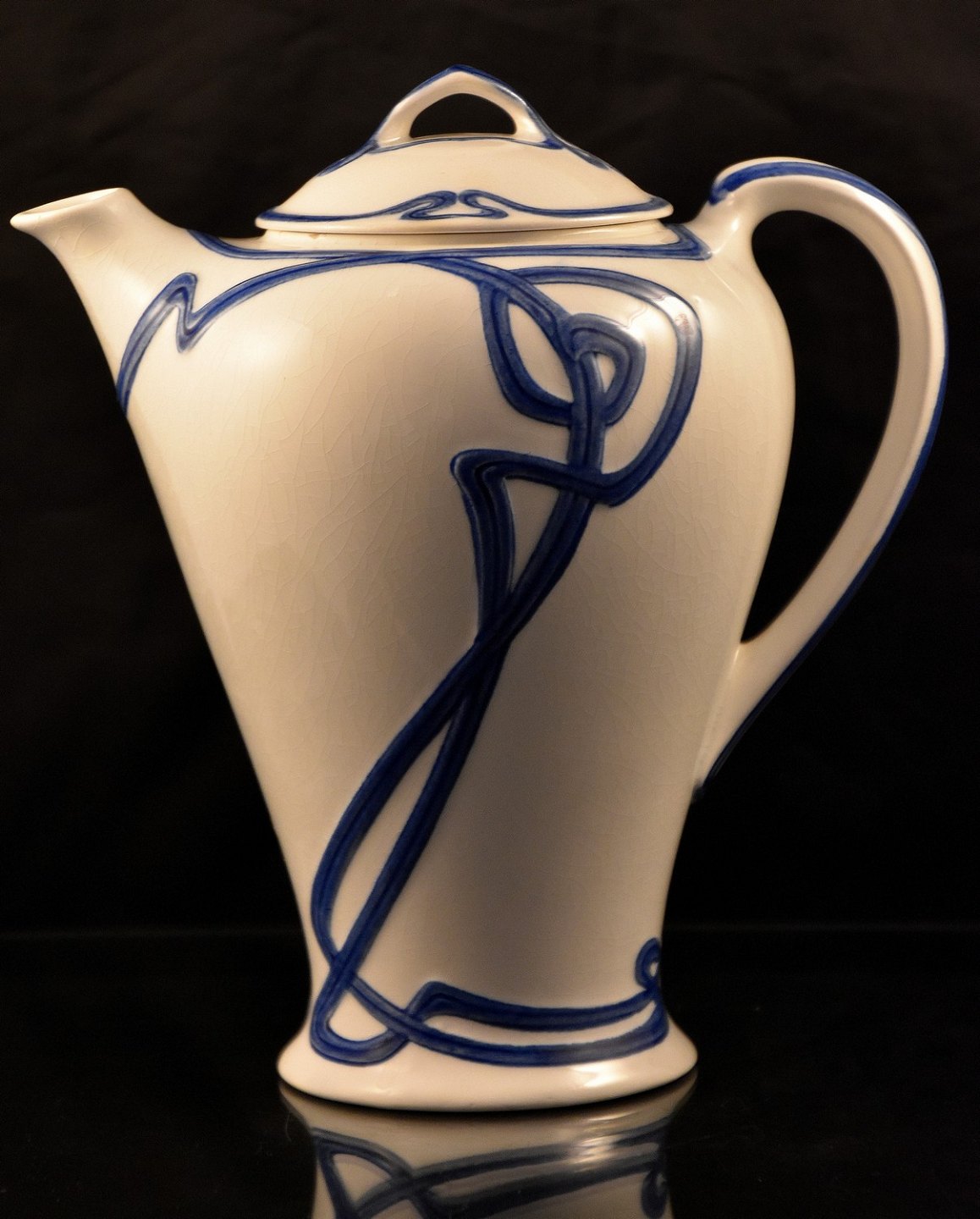 Villeroy & Boch, Dresden. Chokoladekande, Blå Olga, med låg, model Oder.
