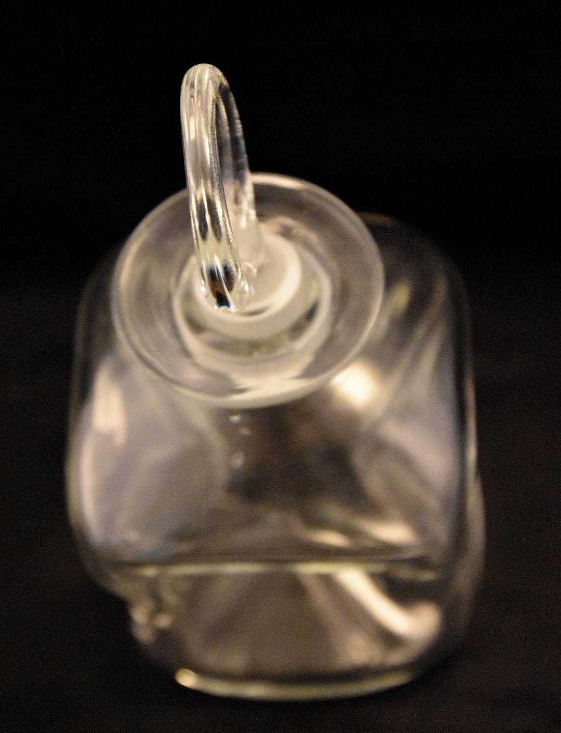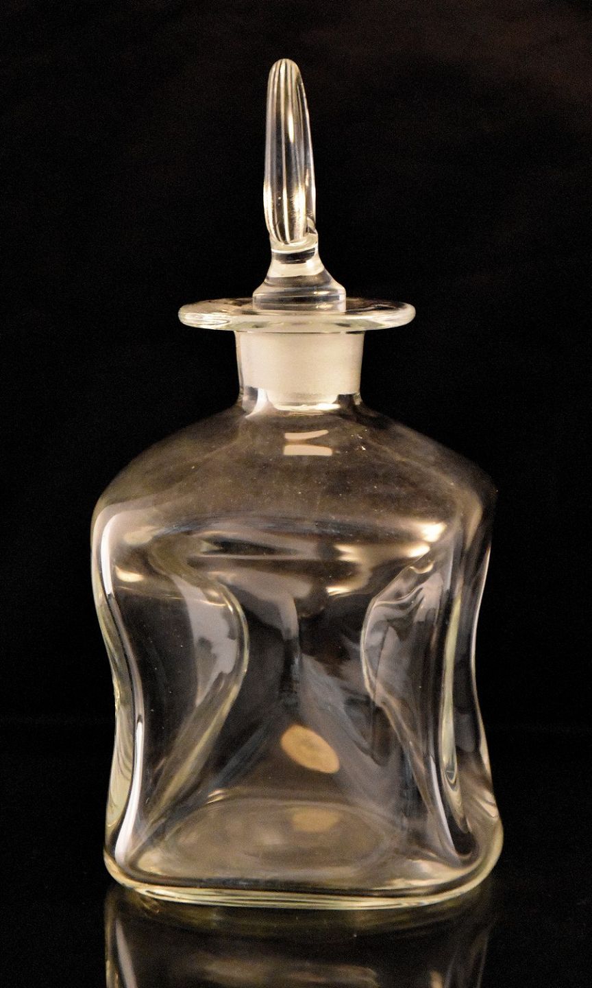 Holmegaard Glasværk, lav klukflaske med flad prop