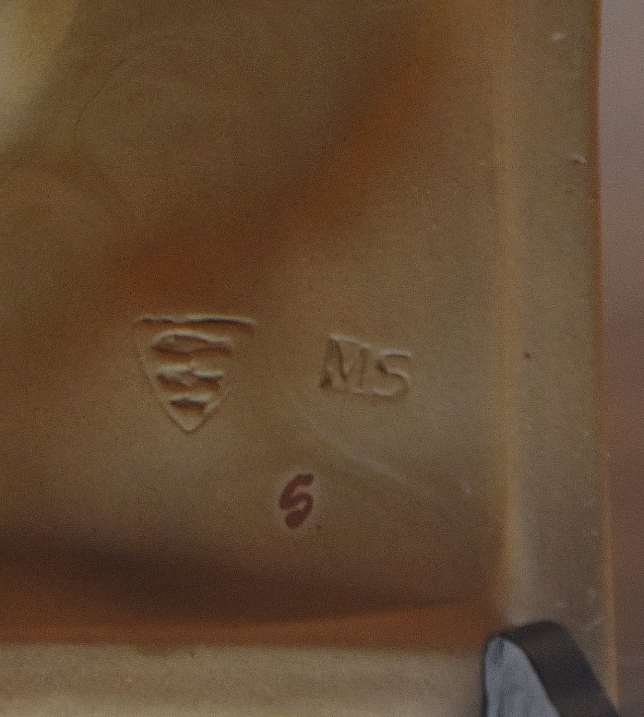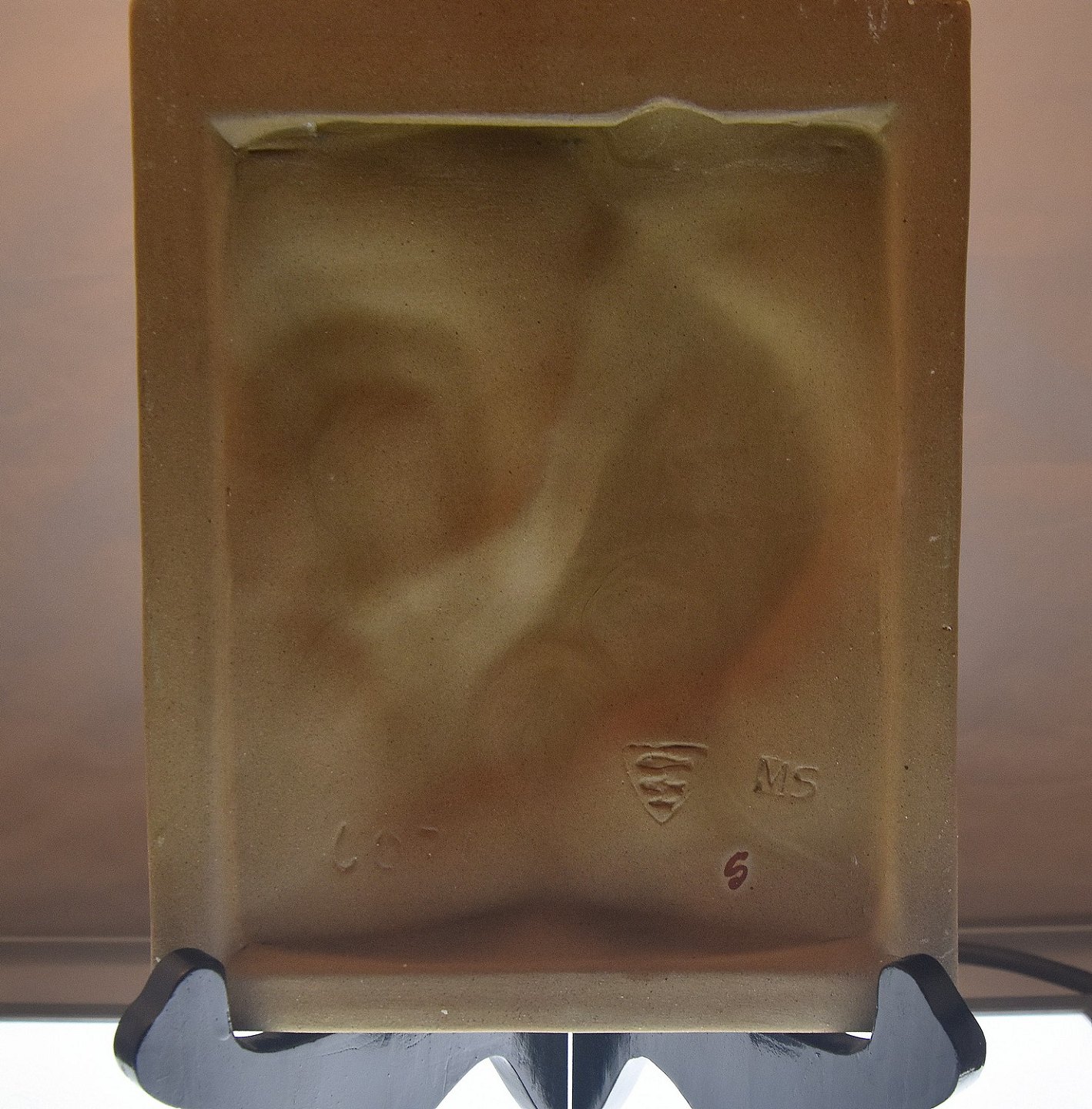 Relieffet har nr.: 6077. Det er signeret MS for Marianne Starck og desuden mærket med våbenskjold med 3 fisk - Rønnes byvåben