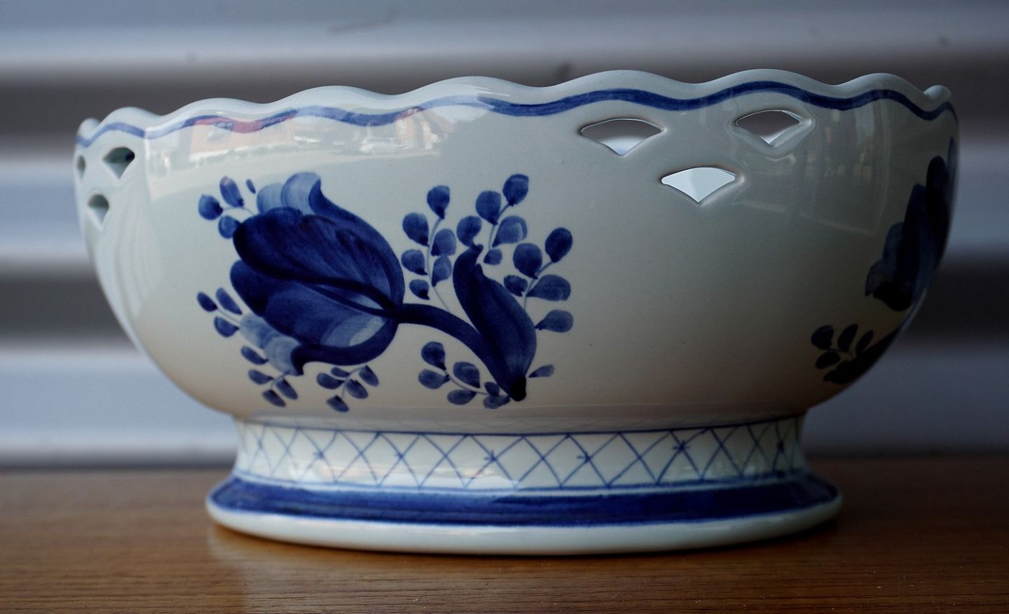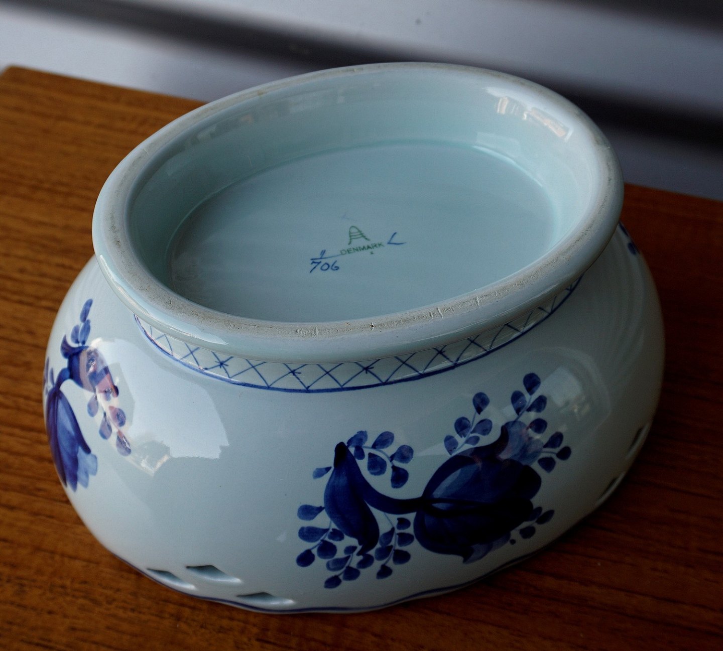 Aluminia fajance, Kongelig Blå Tranquebar skål på fod med blonder (1/700) og med lidt krakeleringer i glasur.