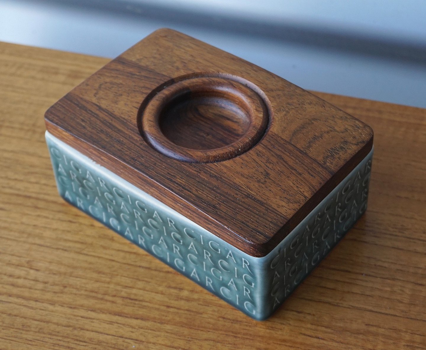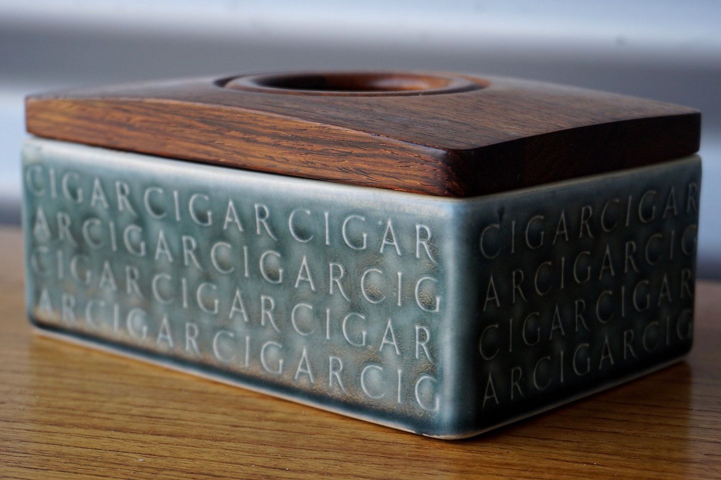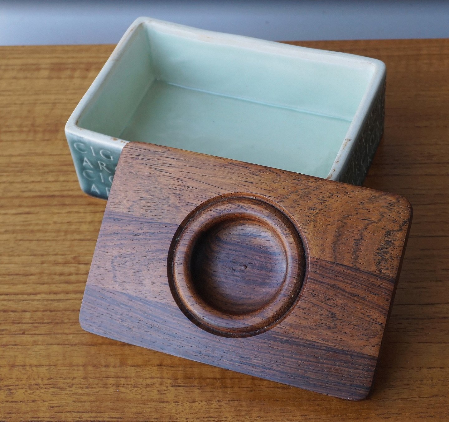 Kronjyden cigarboks. Cigarboks af stentøj med palisanderlåg. IHQ