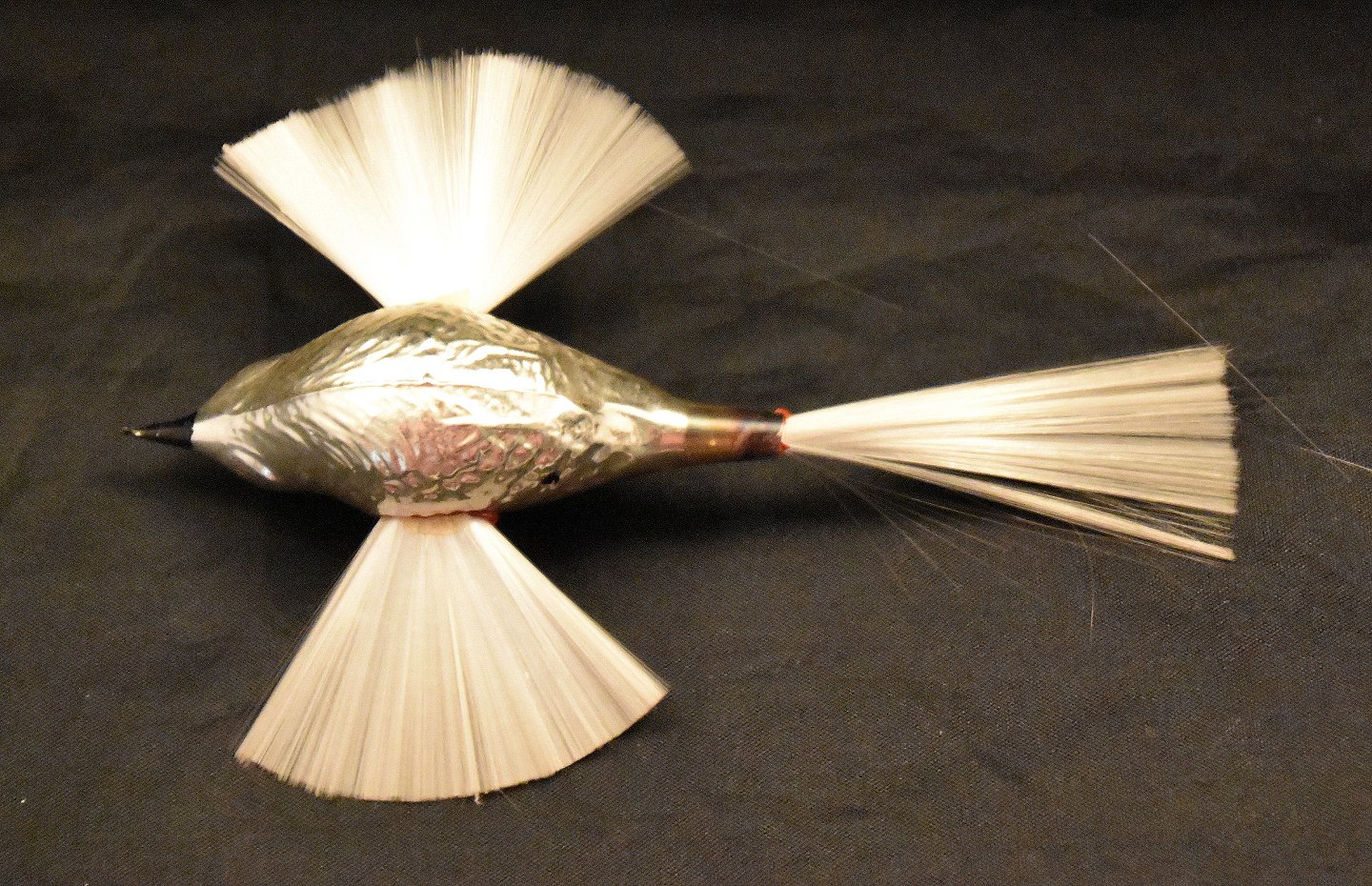 Fugl til ophæng (brugt til grantræ til jul) med vinger og hale af glas