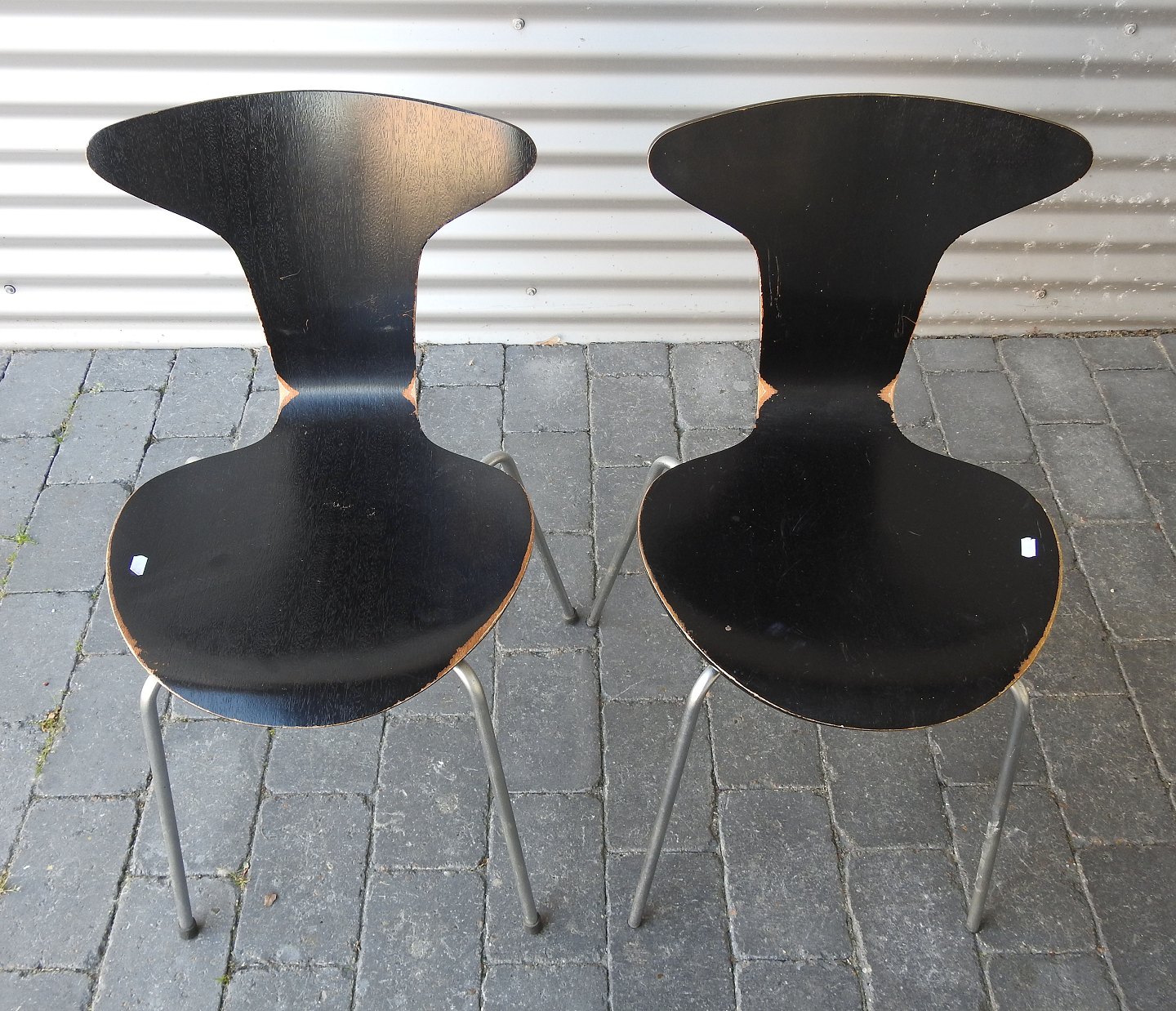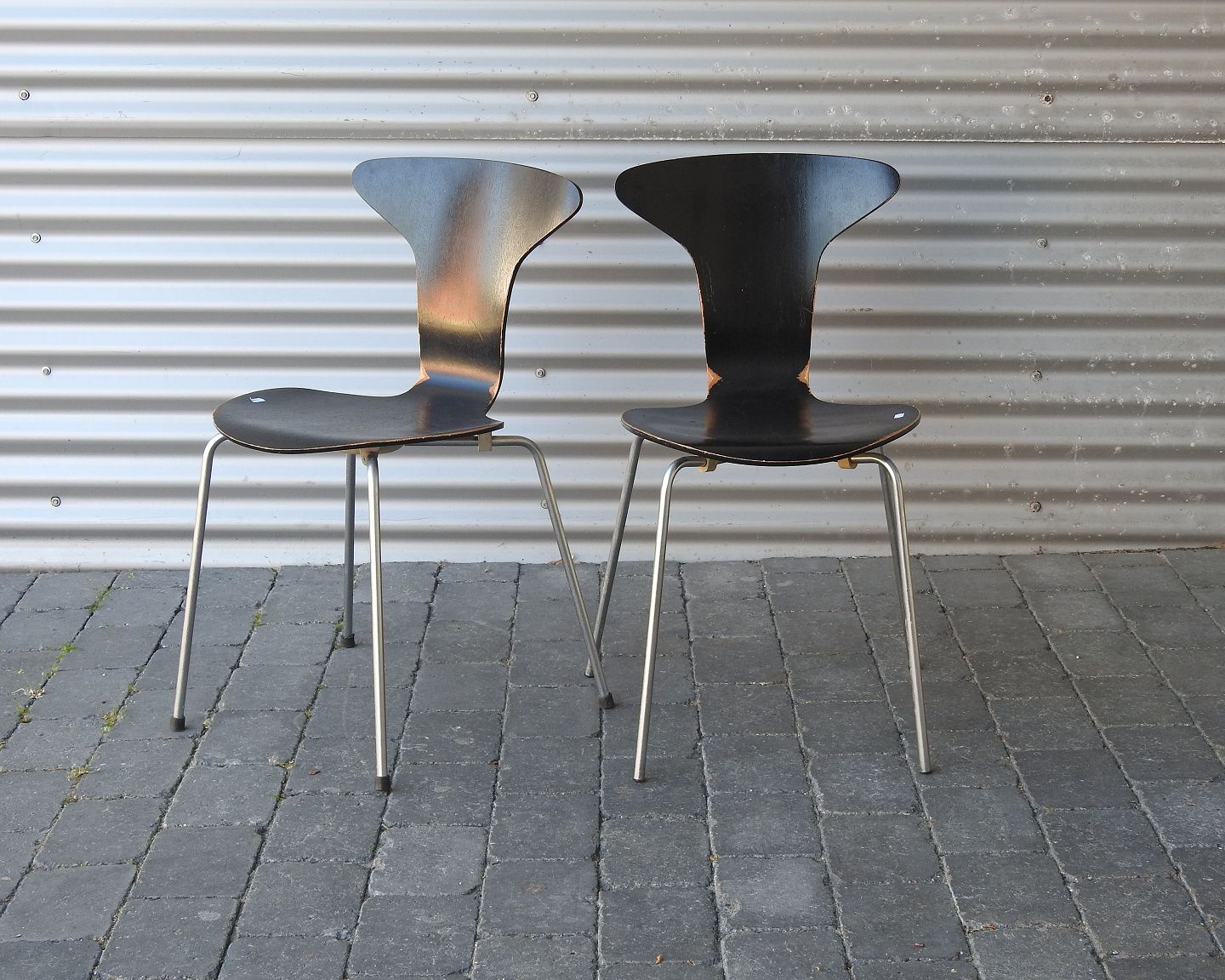 To mygge-stole designet af Arne Jacobsen. Fremstår med brugsspor på sædet, se billede. Model 3105