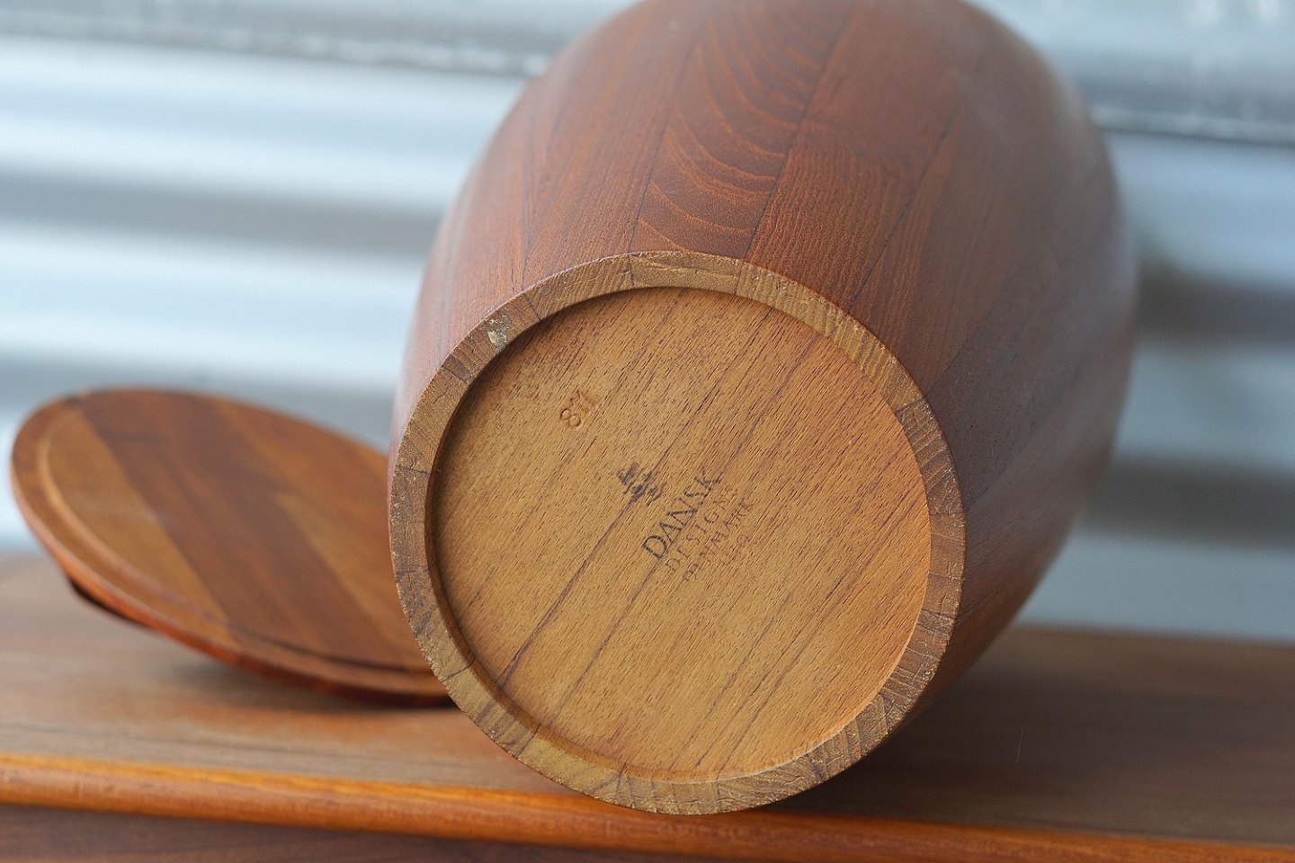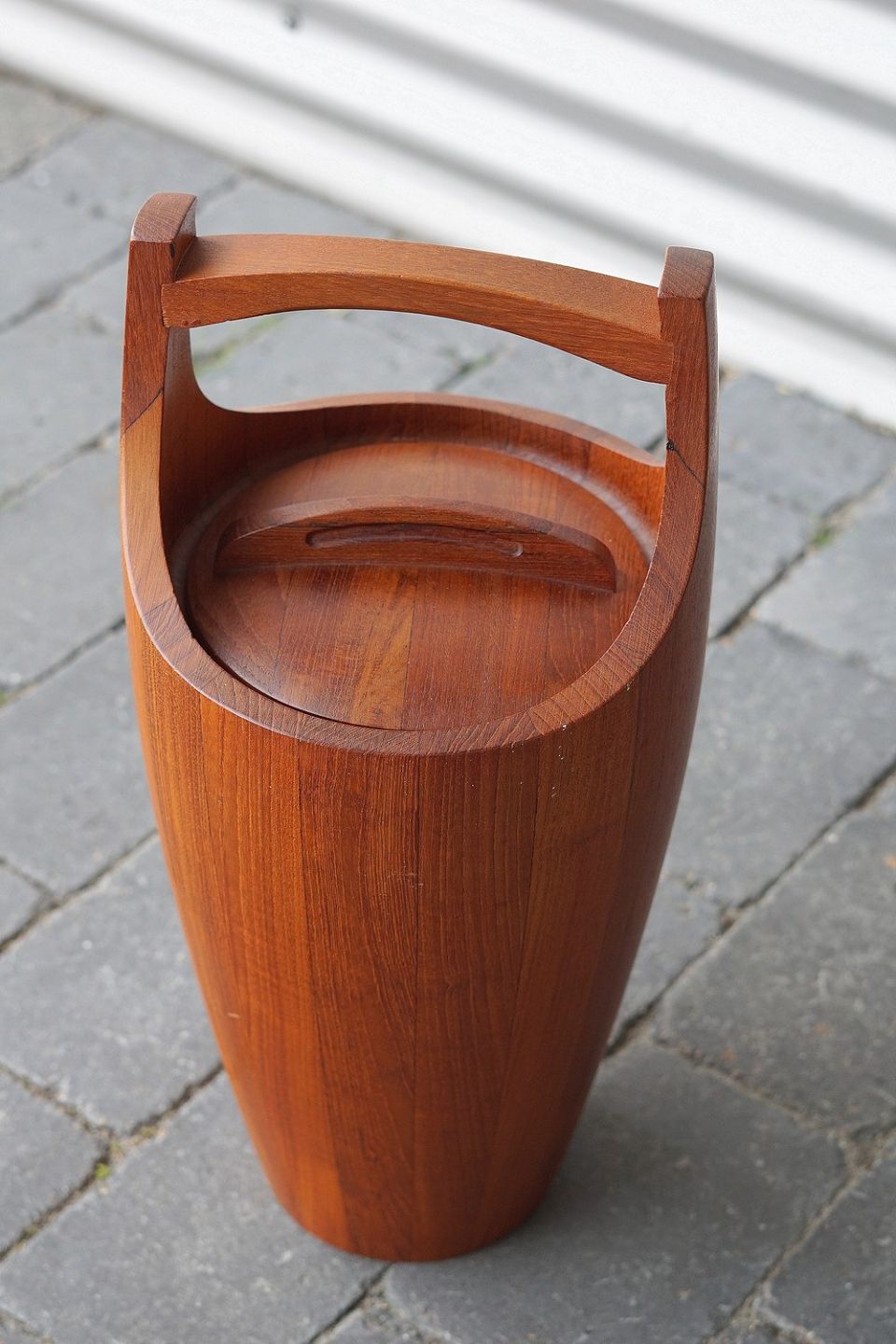Jens Harald Quistgaard isspand med låg i stavlimet teaktræ, indsats af plast, IHQ, modelfoto