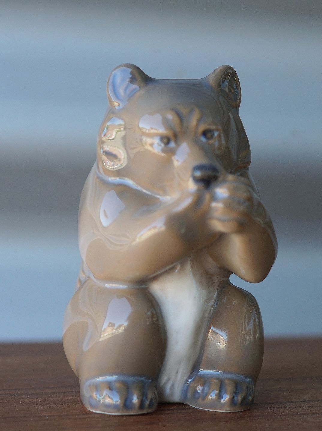 Royal Copenhagen Figur, kongelig porcelæn. Royal Copenhagen figur, Spisende bjørneunge (3014)
