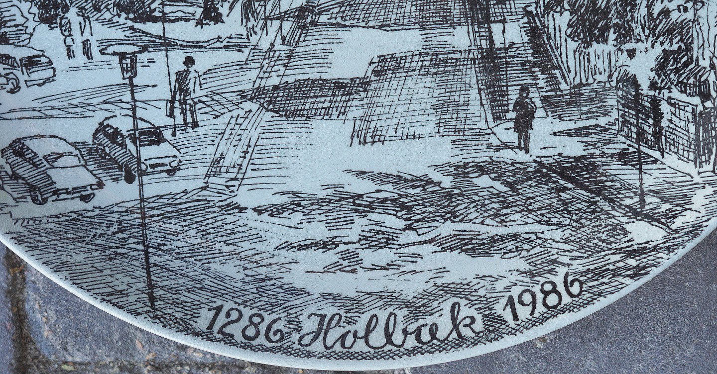 Nymølle, jubilæumsplatte udgivet i forbindelse med Holbæks 700 års jubilæum som købstad. Nymølle, Danmark 1986