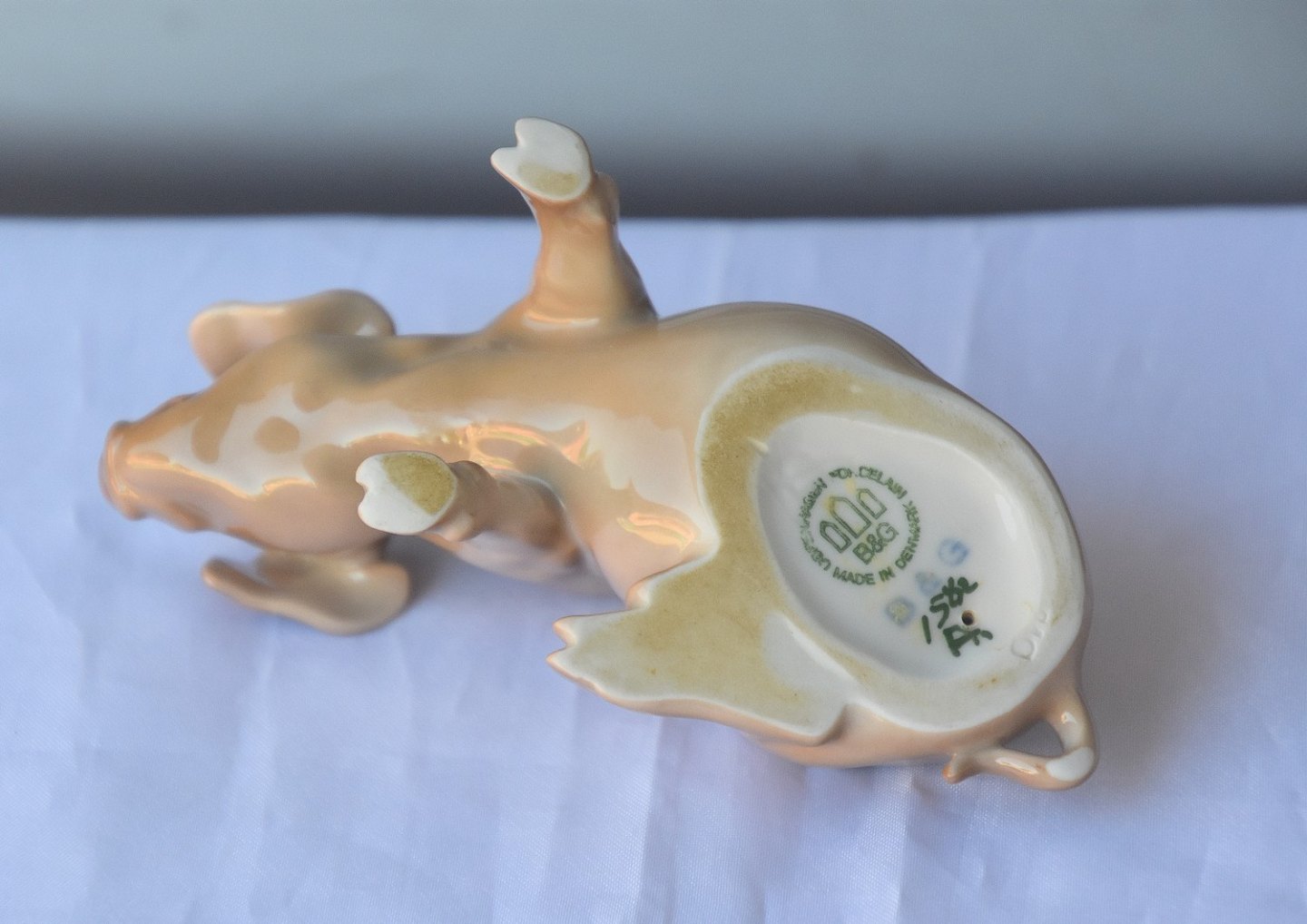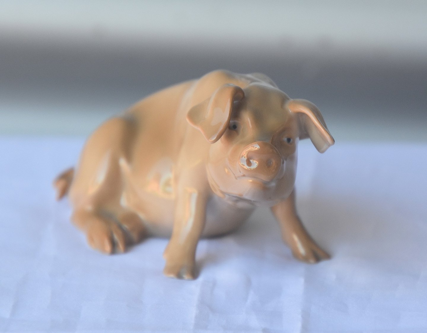Figur i porcelæn med motiv af en siddende gris nr. 1582
