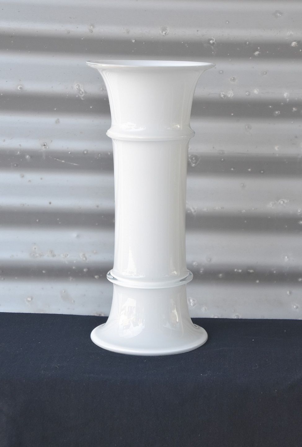Holmegaard vase i hvid opalglas. Design Michael Bang som stod for design af de mundblæste ting i hvidt opalglas, som var glasværkets speciale.
